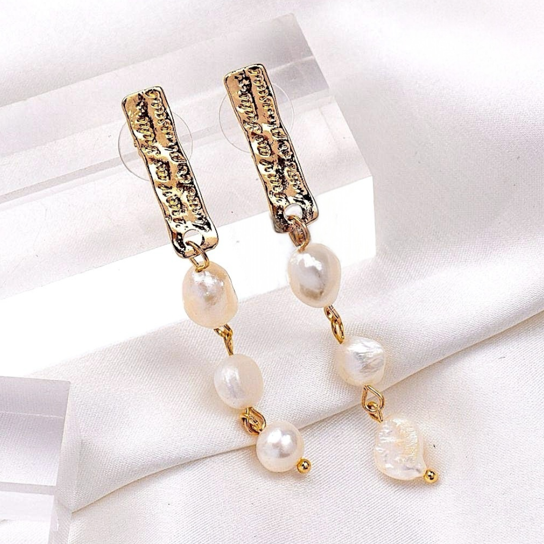 Aro dorado de metal con perlitas de agua dulce.