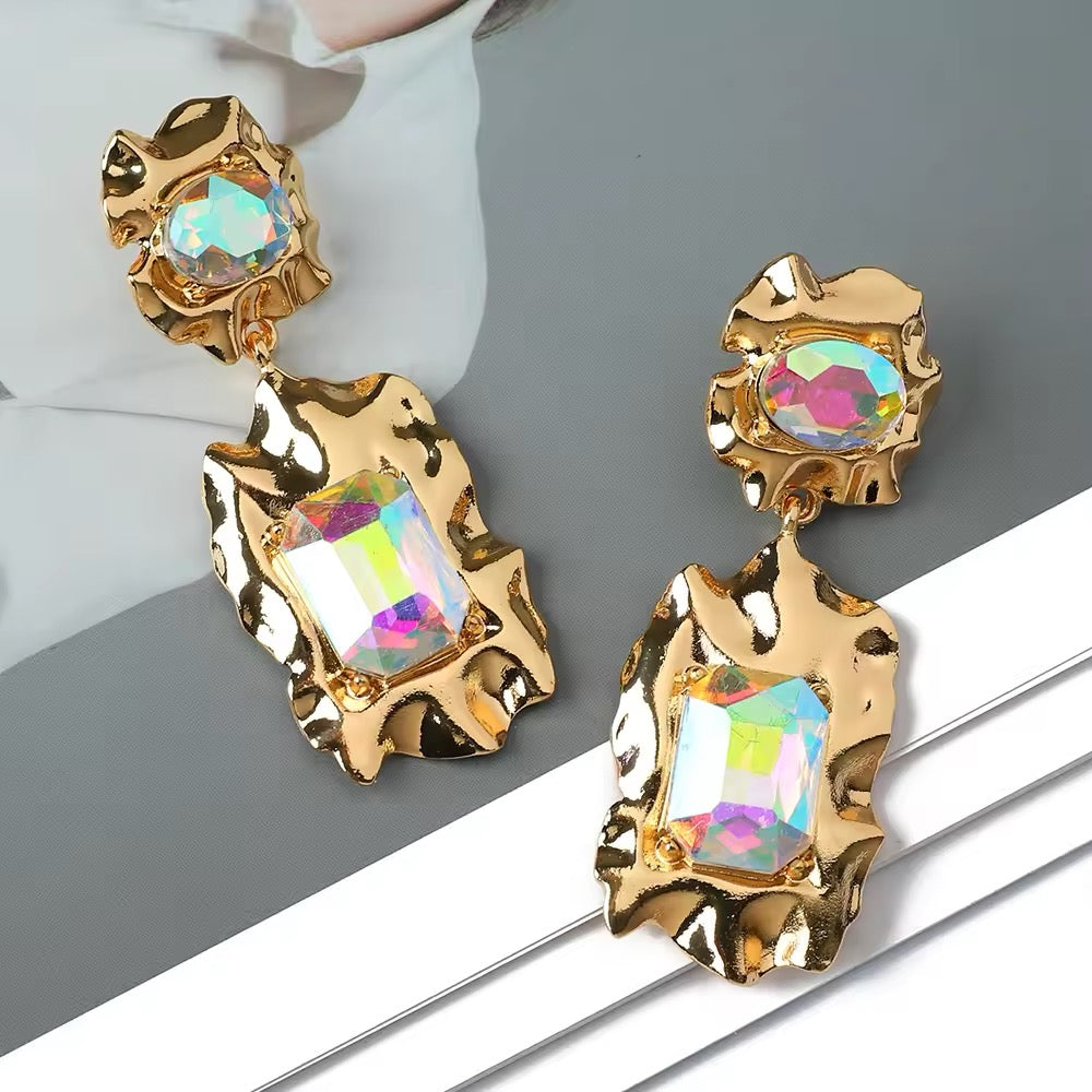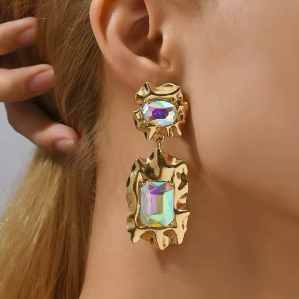 Aro dorado de metal con piedras tornasoladas facetadas de strass.