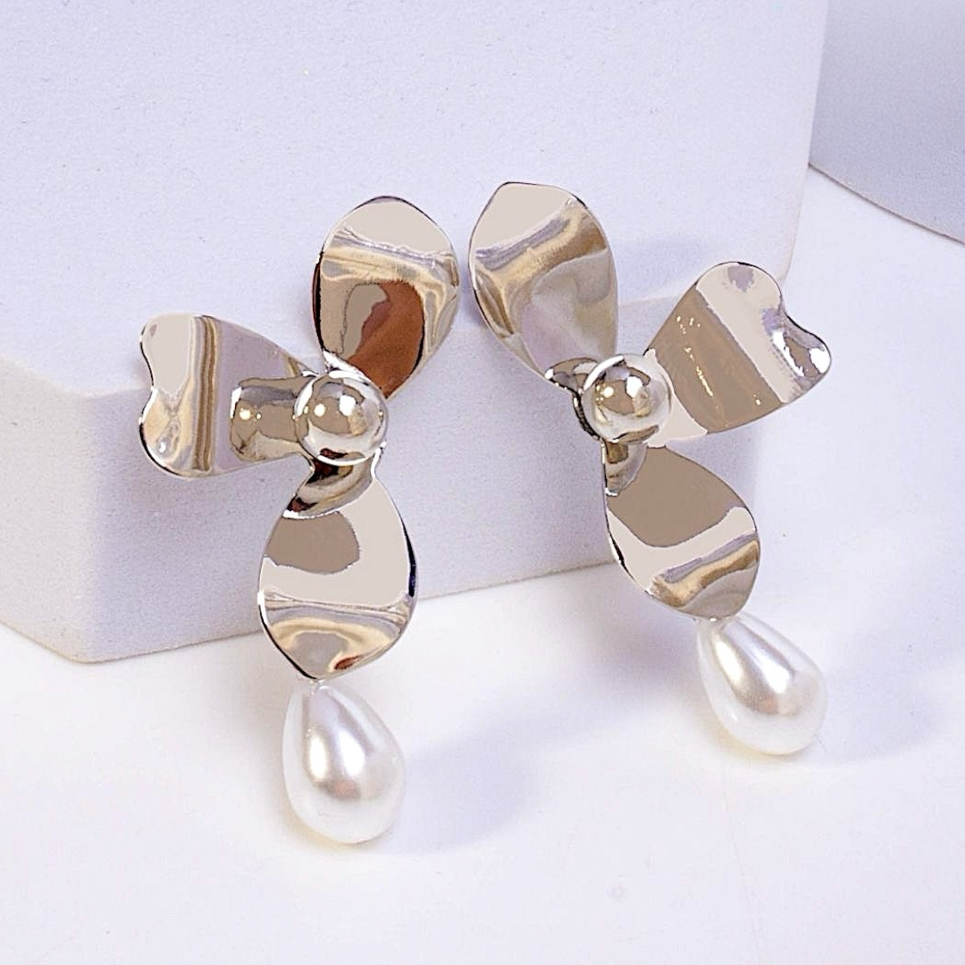 Aro plateado de metal con trabajos en relieves y perlitas