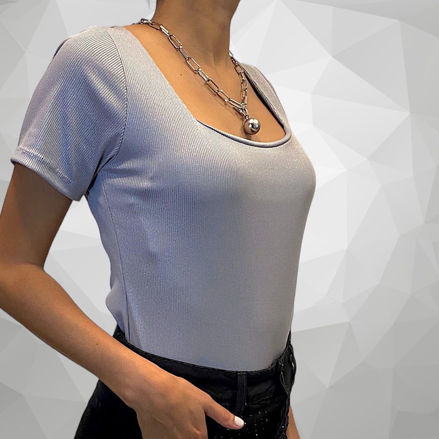 Body plateado elastizado con brillo