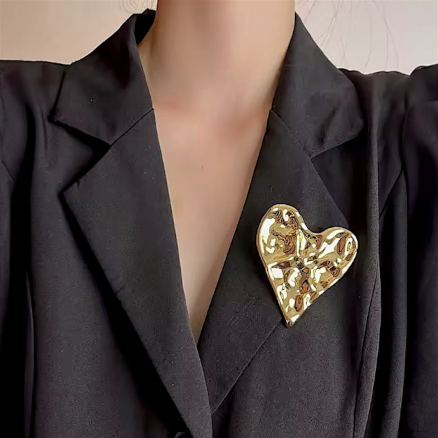 Broche dorado de metal con trabajo de martillado