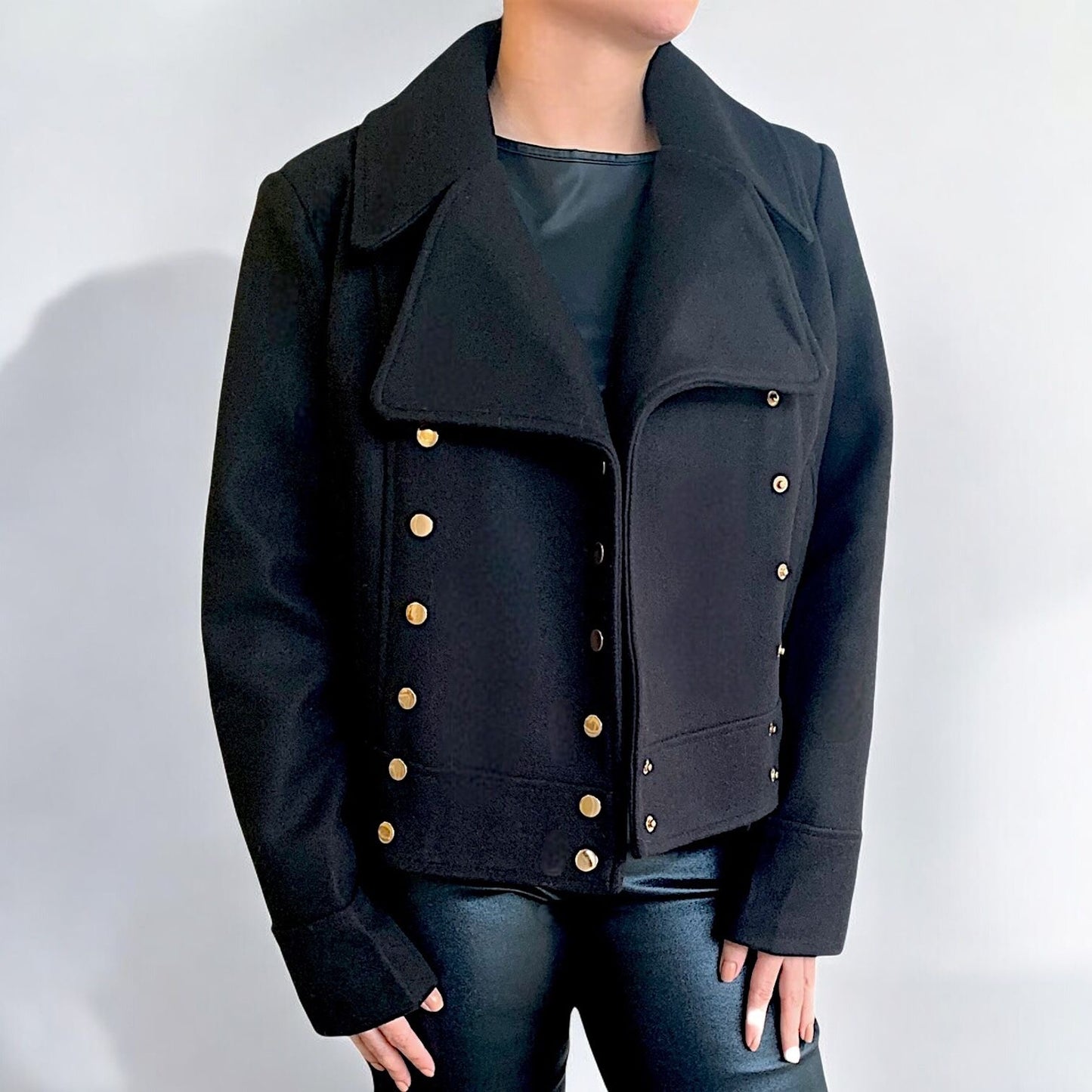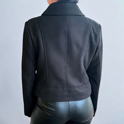 Campera cruzada abrigada con forro de peluche o pelo sintético en la parte interna.