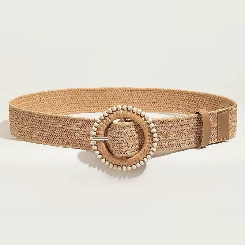 Cinto elastizado + hebilla redonda con detalles bordados.