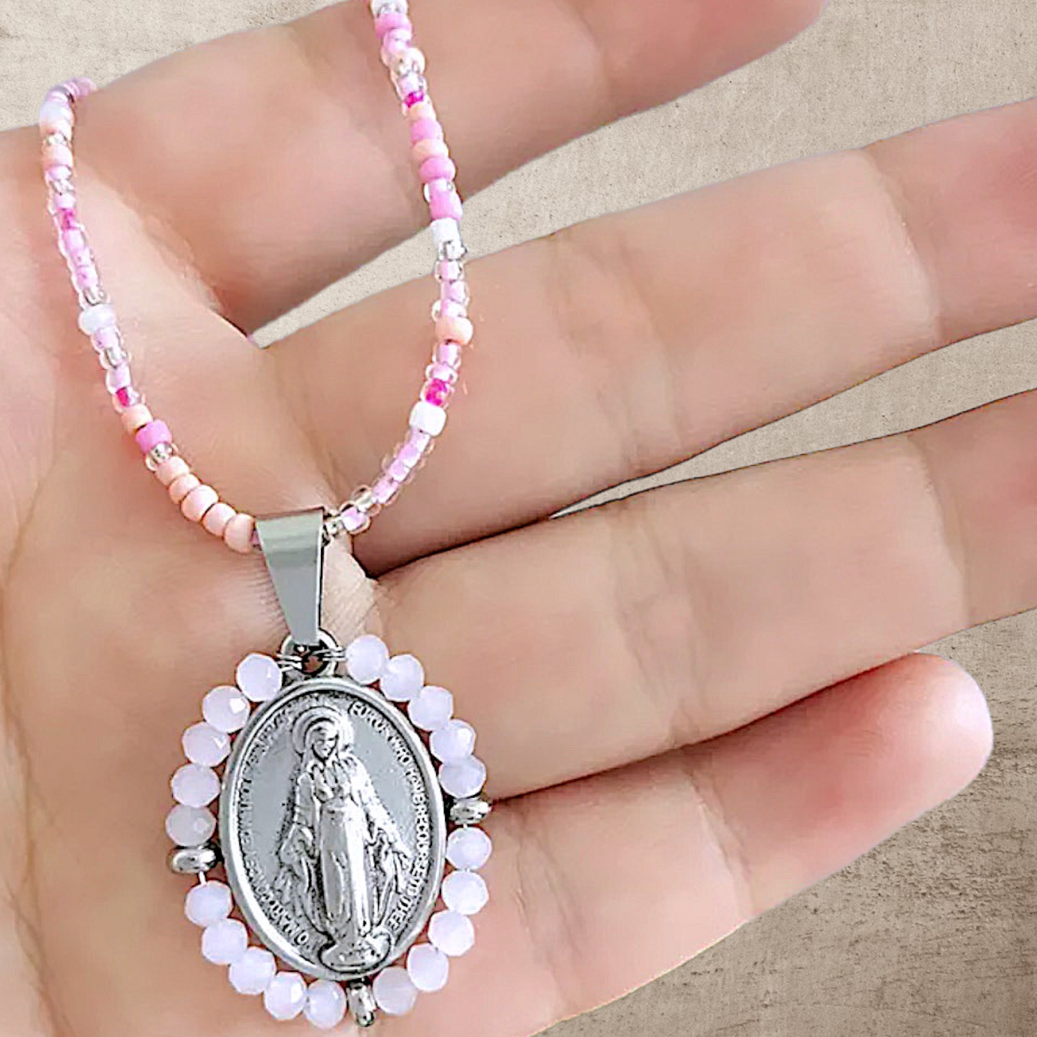 Collar de Acero con mostacillas y cristalcitos facetados.