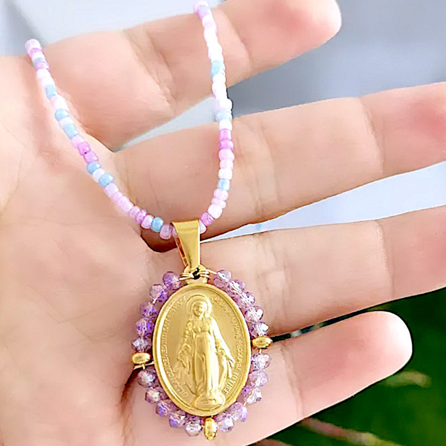 Collar de Acero con mostacillas y cristalcitos facetados.