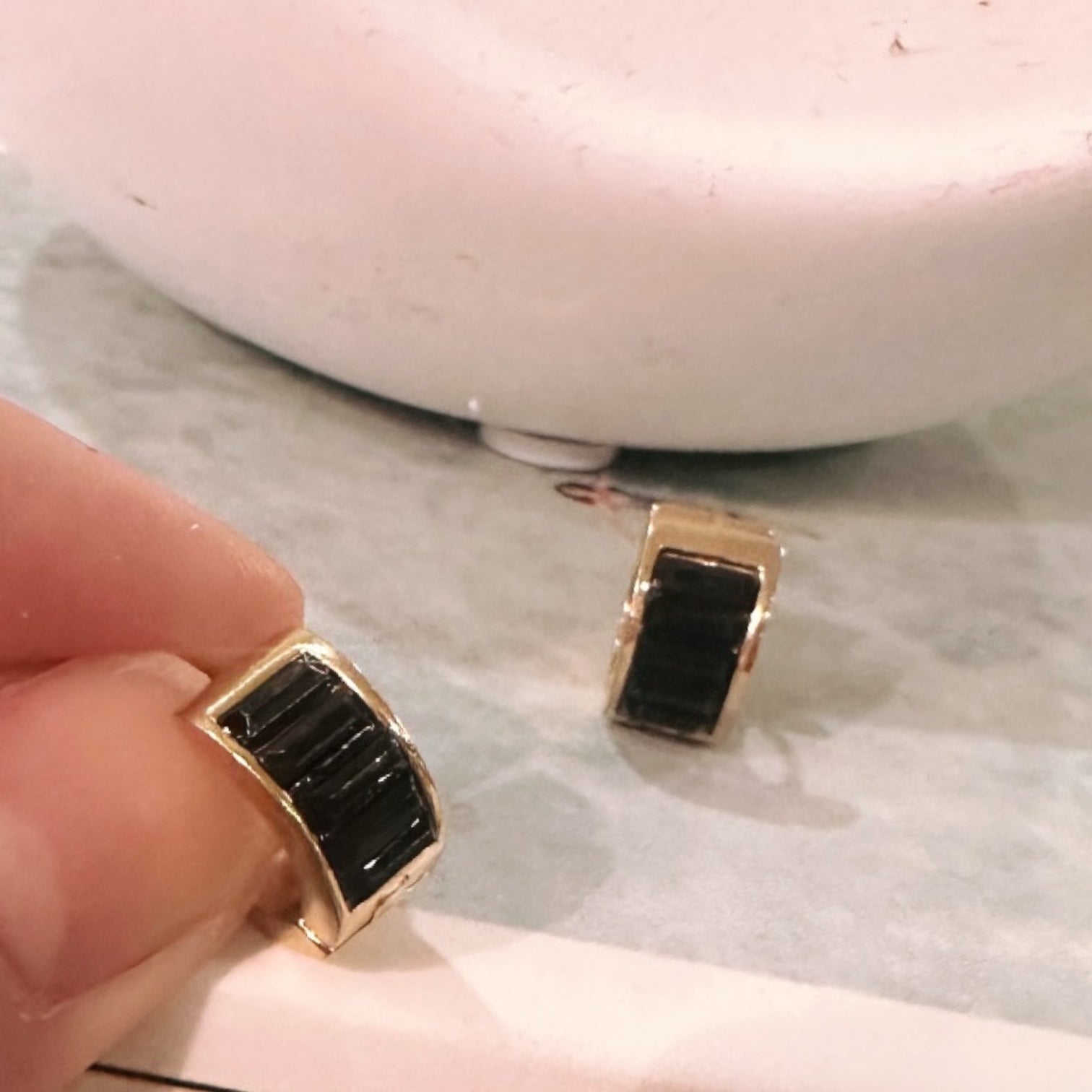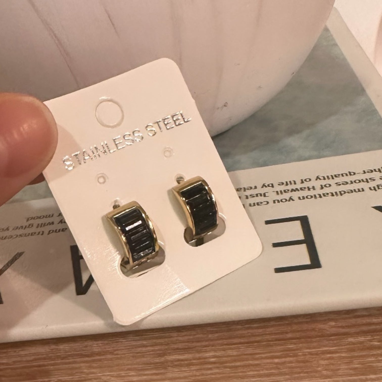 Aro 100% Acero con piedritas negras de strass.