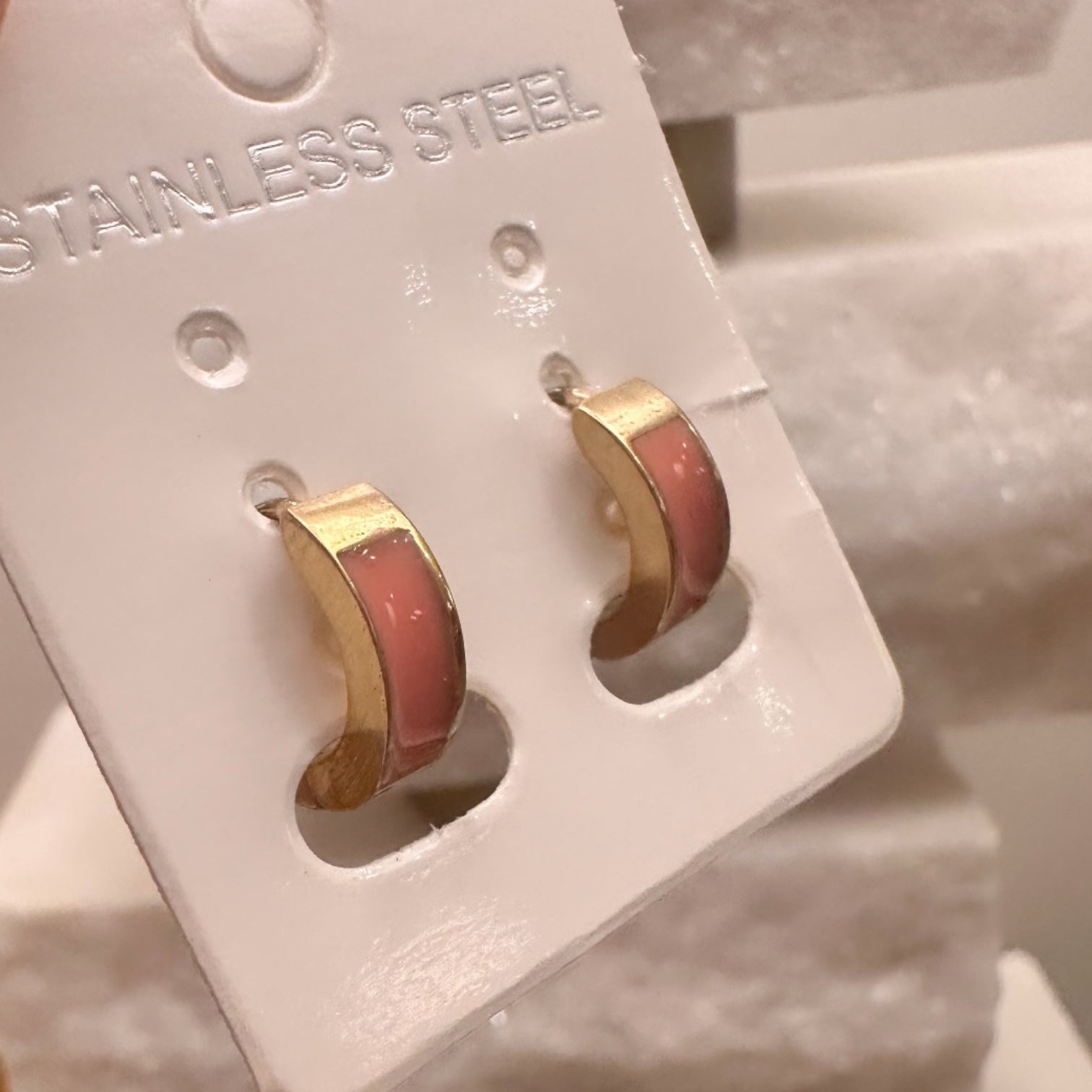 Aro 100% Acero con esmaltado en rosado.