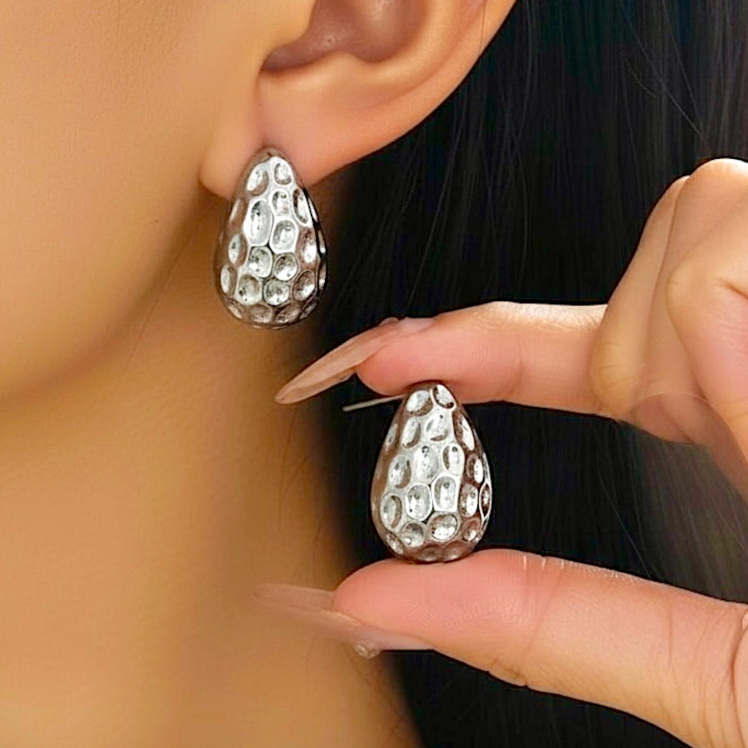 Aro gota 100% plateado de CCB con trabajos de martillado.
