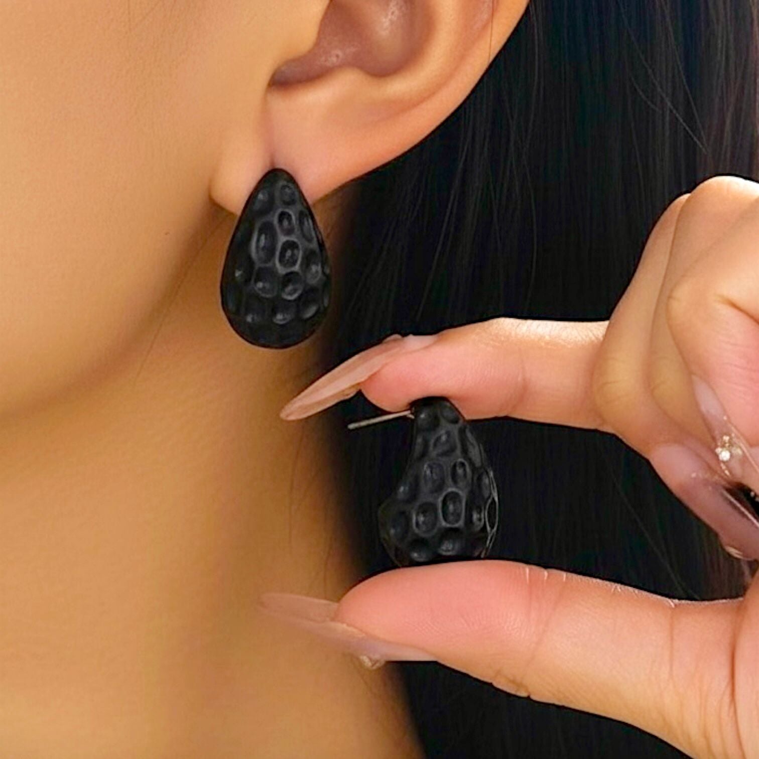 Aro gota en negro opaco de CCB con trabajos de martillado.