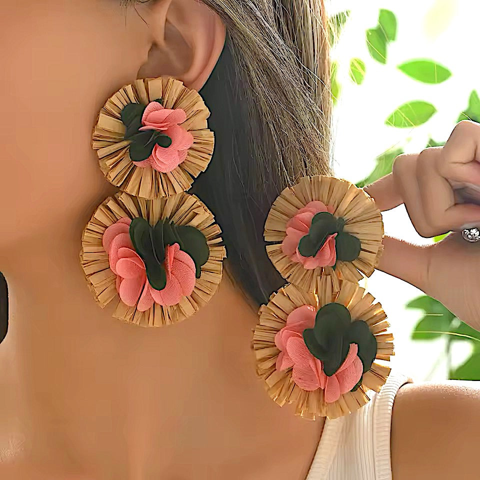 Aro Rafia con pétalos de tela