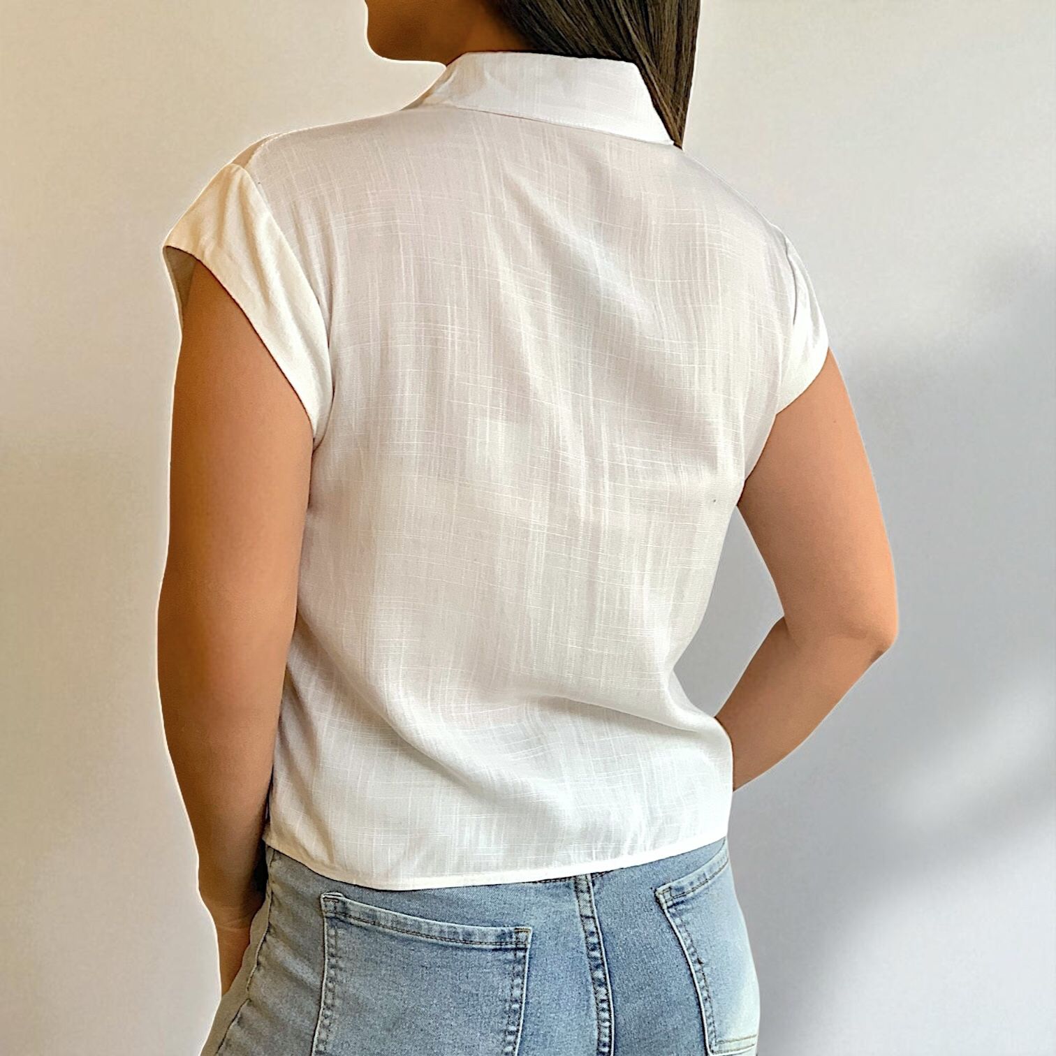 Blusa con bordados en hilos.