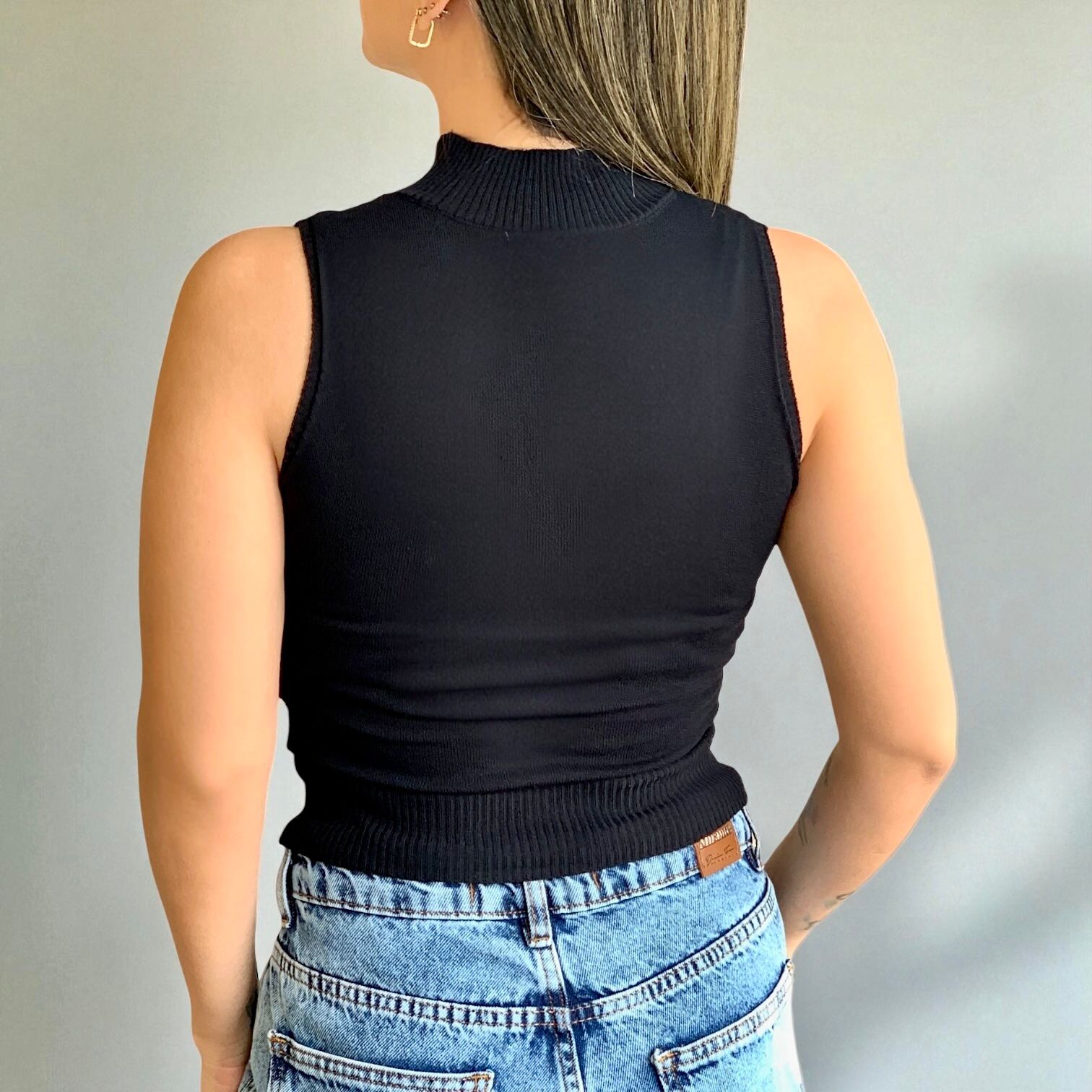 Blusa elastziada de hilo, bordada con lentejuelas.