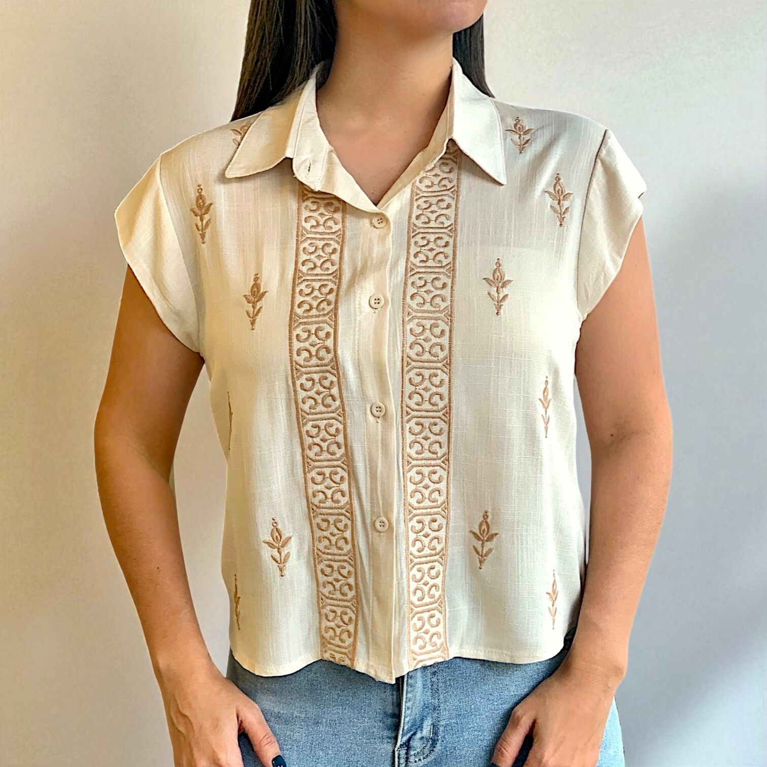 Blusa con bordados en hilos.
