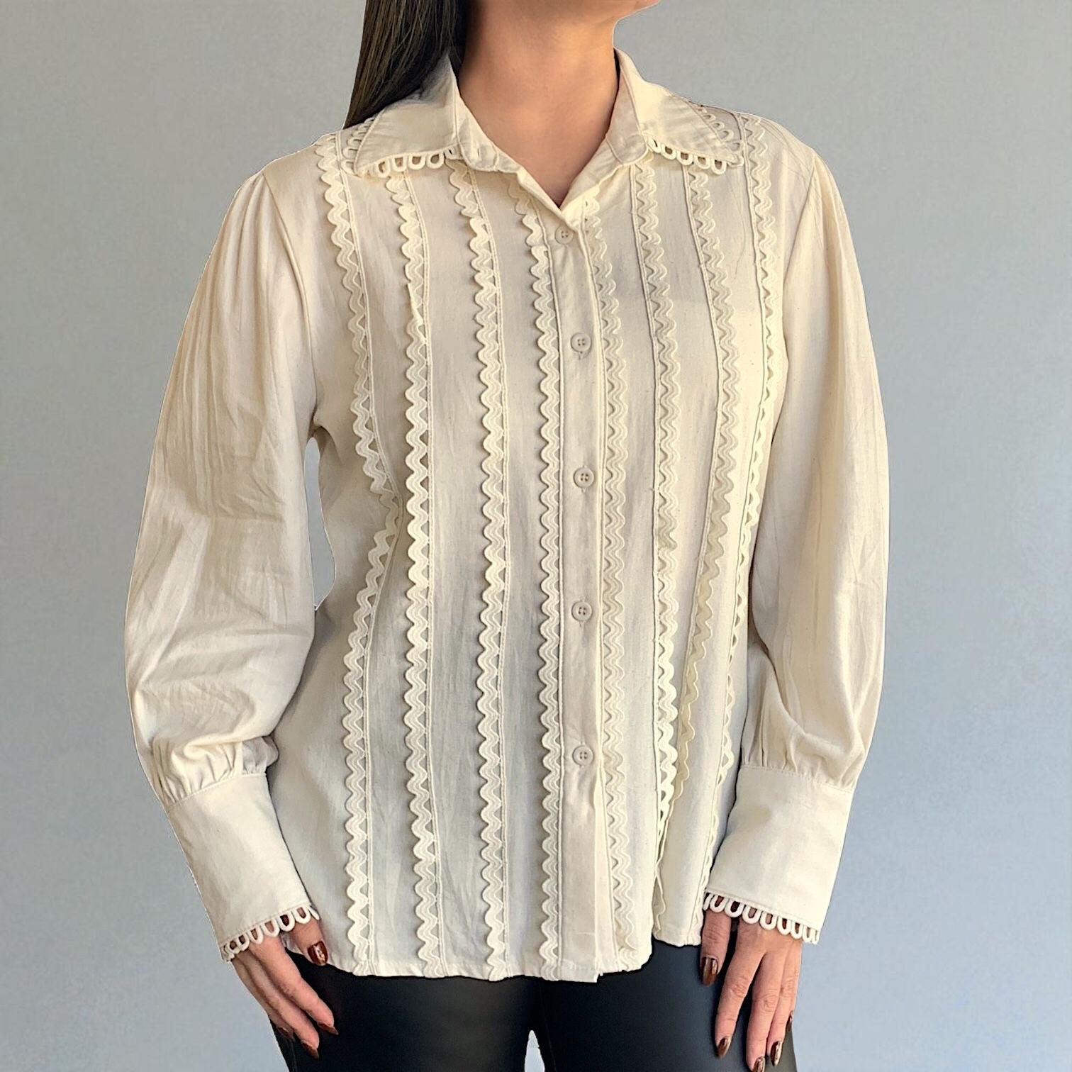 Camisa con detalles bordados y trabajos calados.