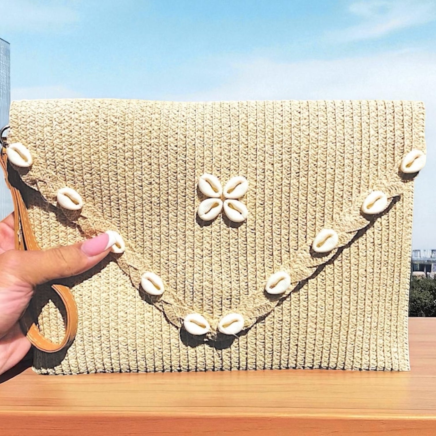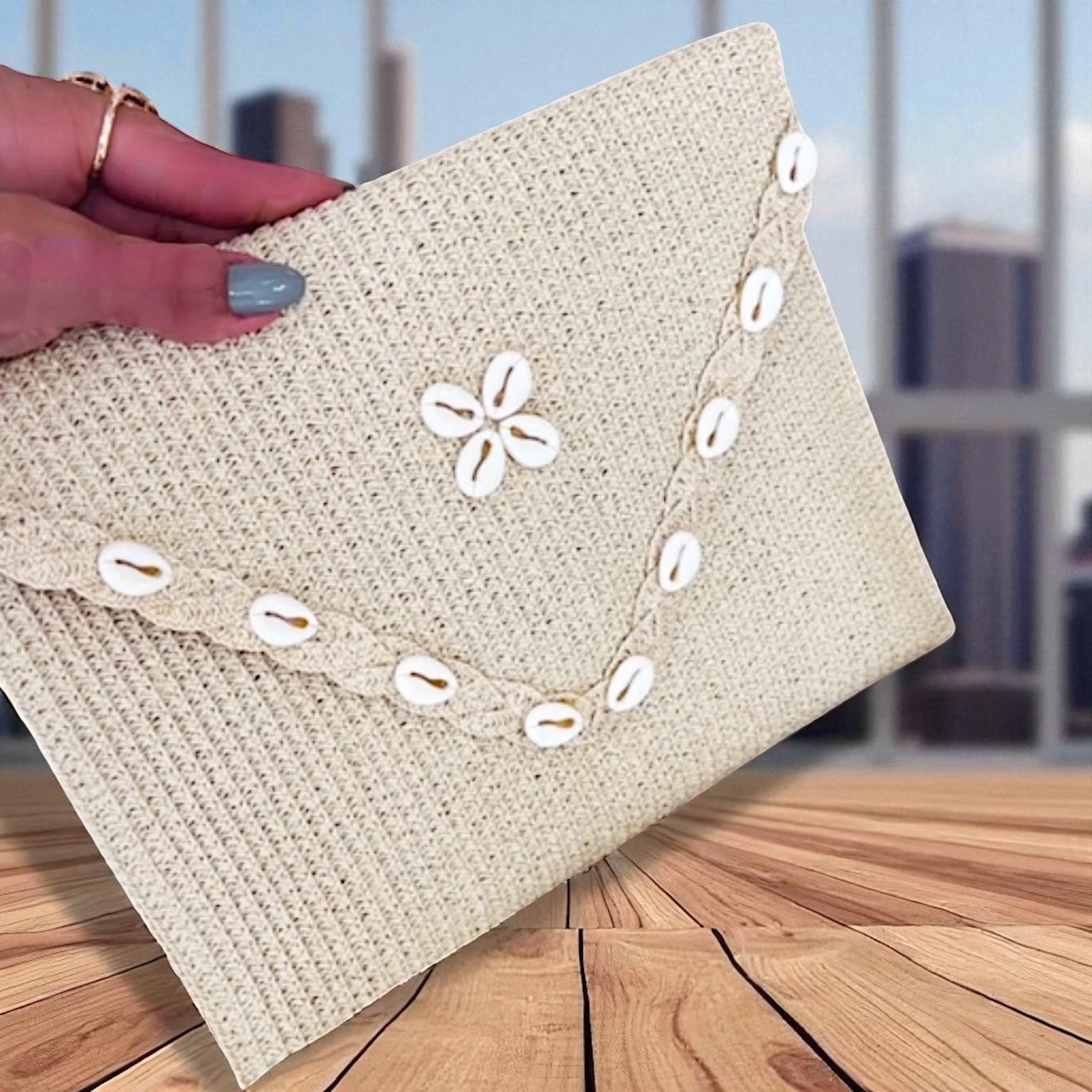 Cartera/ Sobre de rafia, totalmente forrado por dentro + 1 bolsillo en el interior.