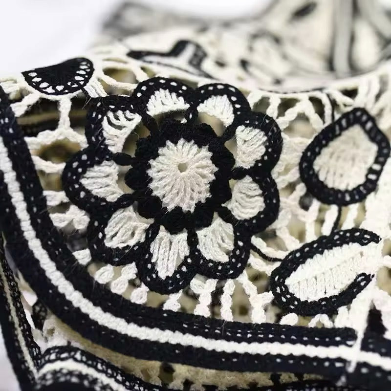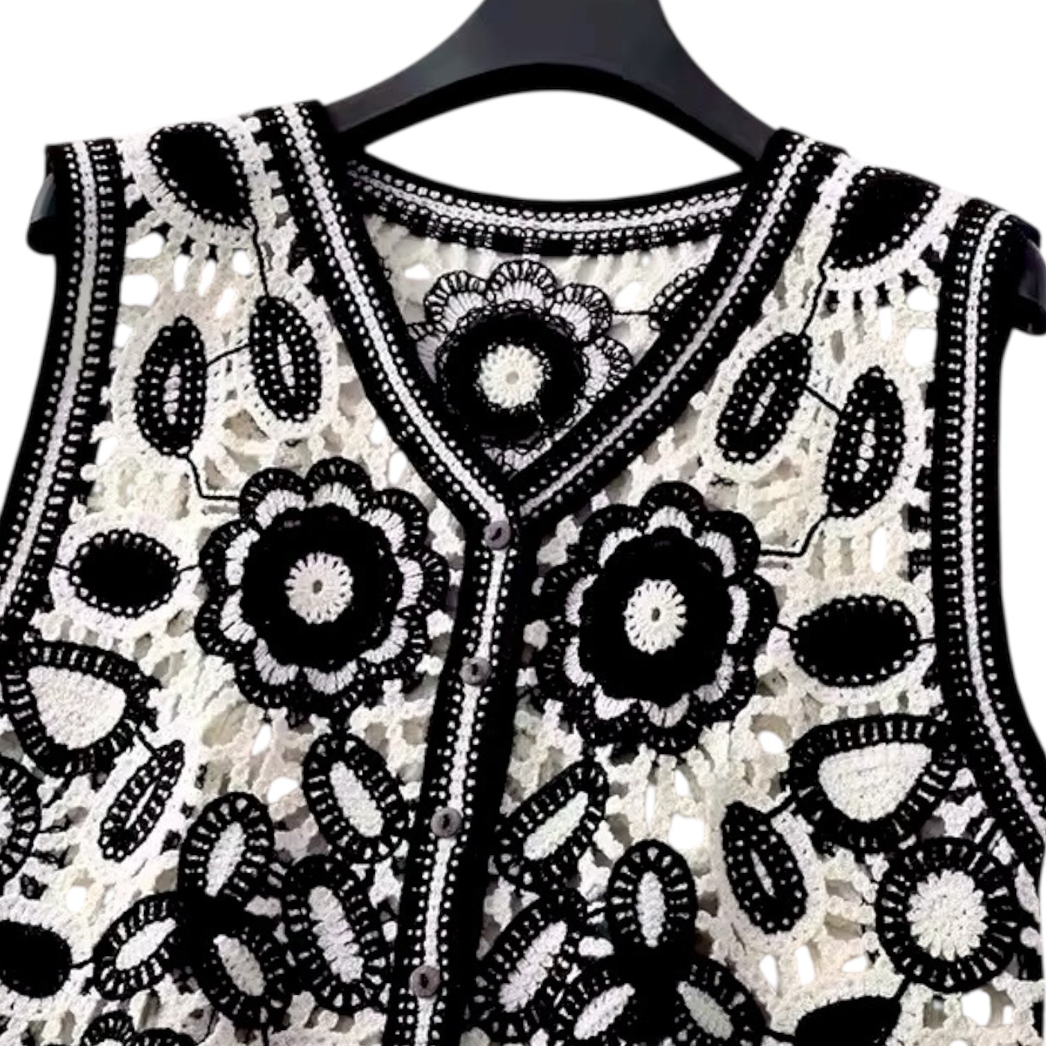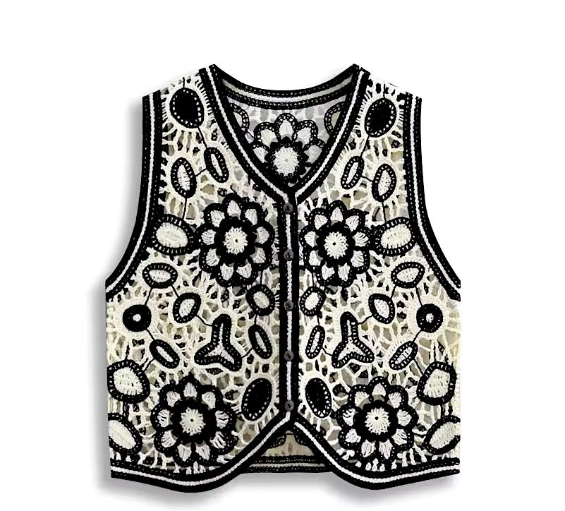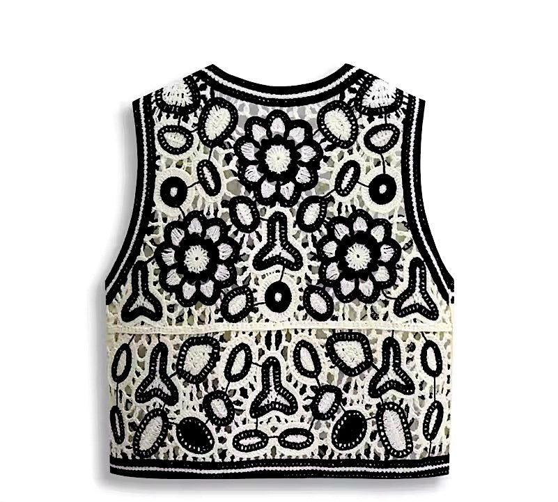 Chaleco de croché con de detalles calados. Puede usarse abierto o cerrado.