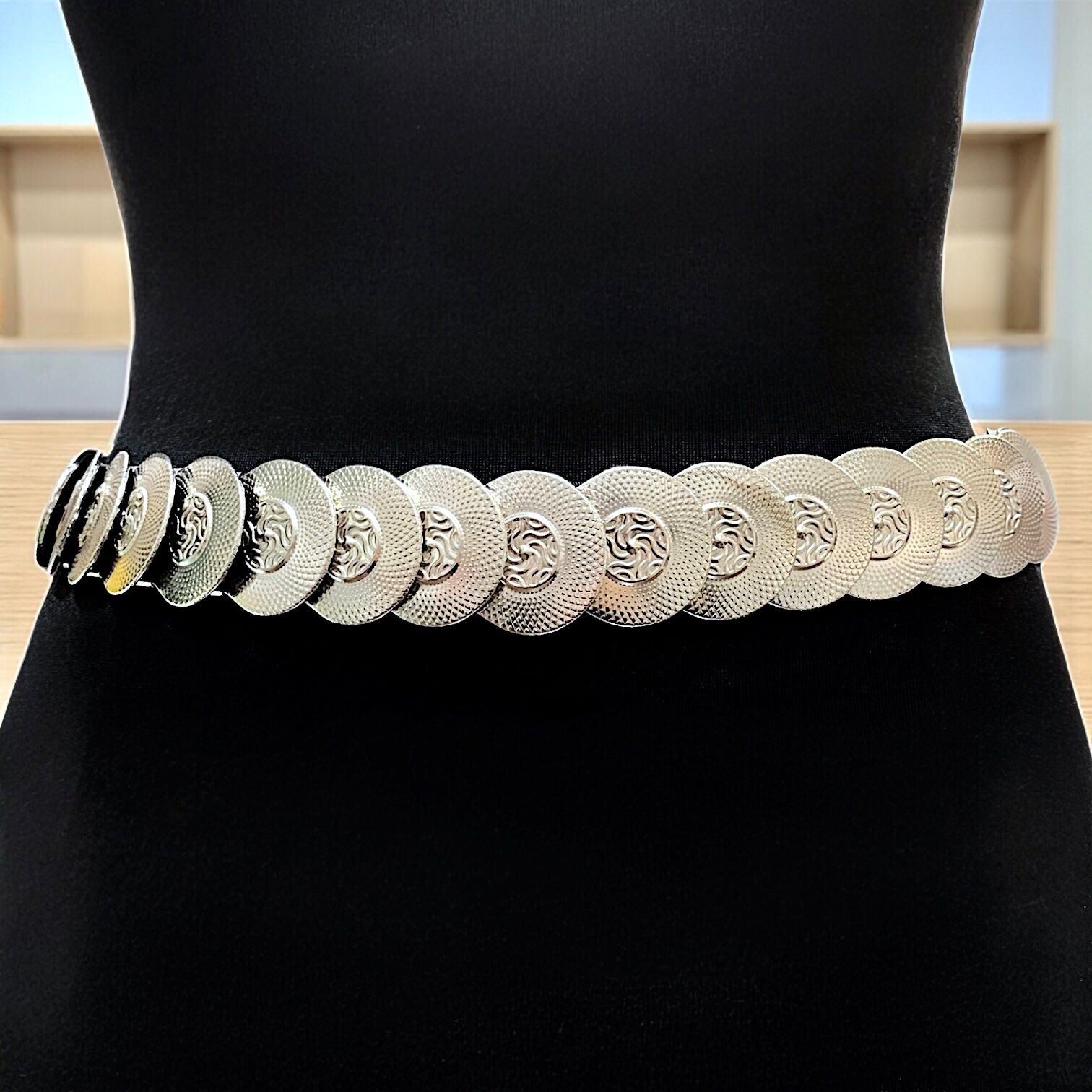 Cinto elastizado con monedas plateadas