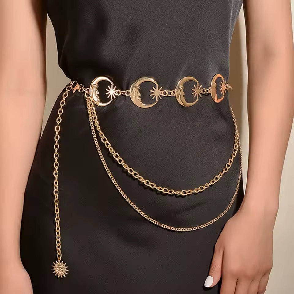 Cinto dorado de metal, se ajusta según necesidad.