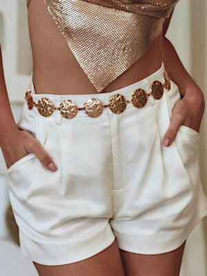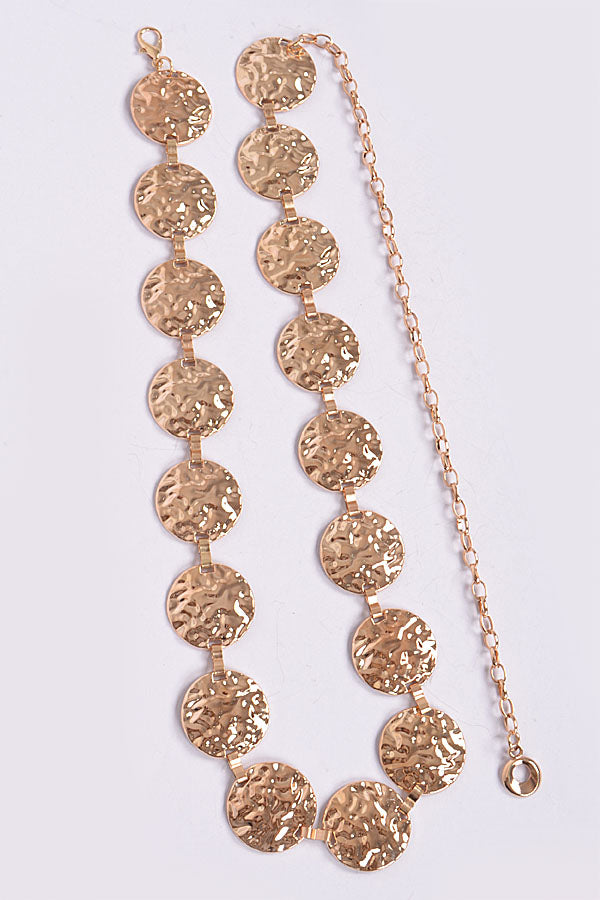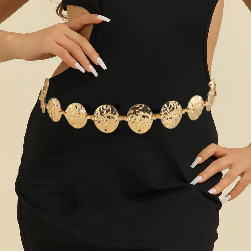 Cinto dorado de metal + trabajo de martillado con cadena para ajustar a medida