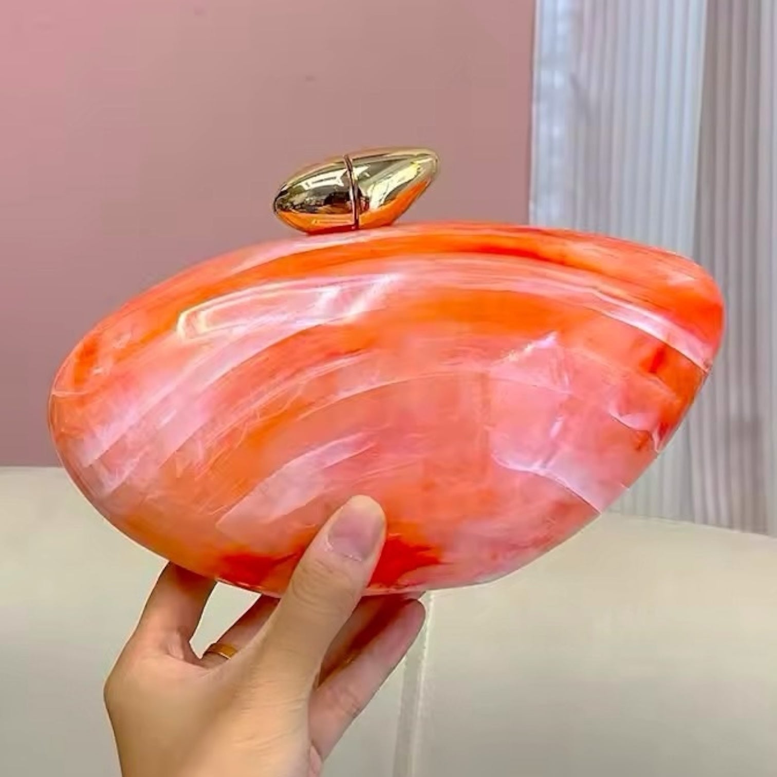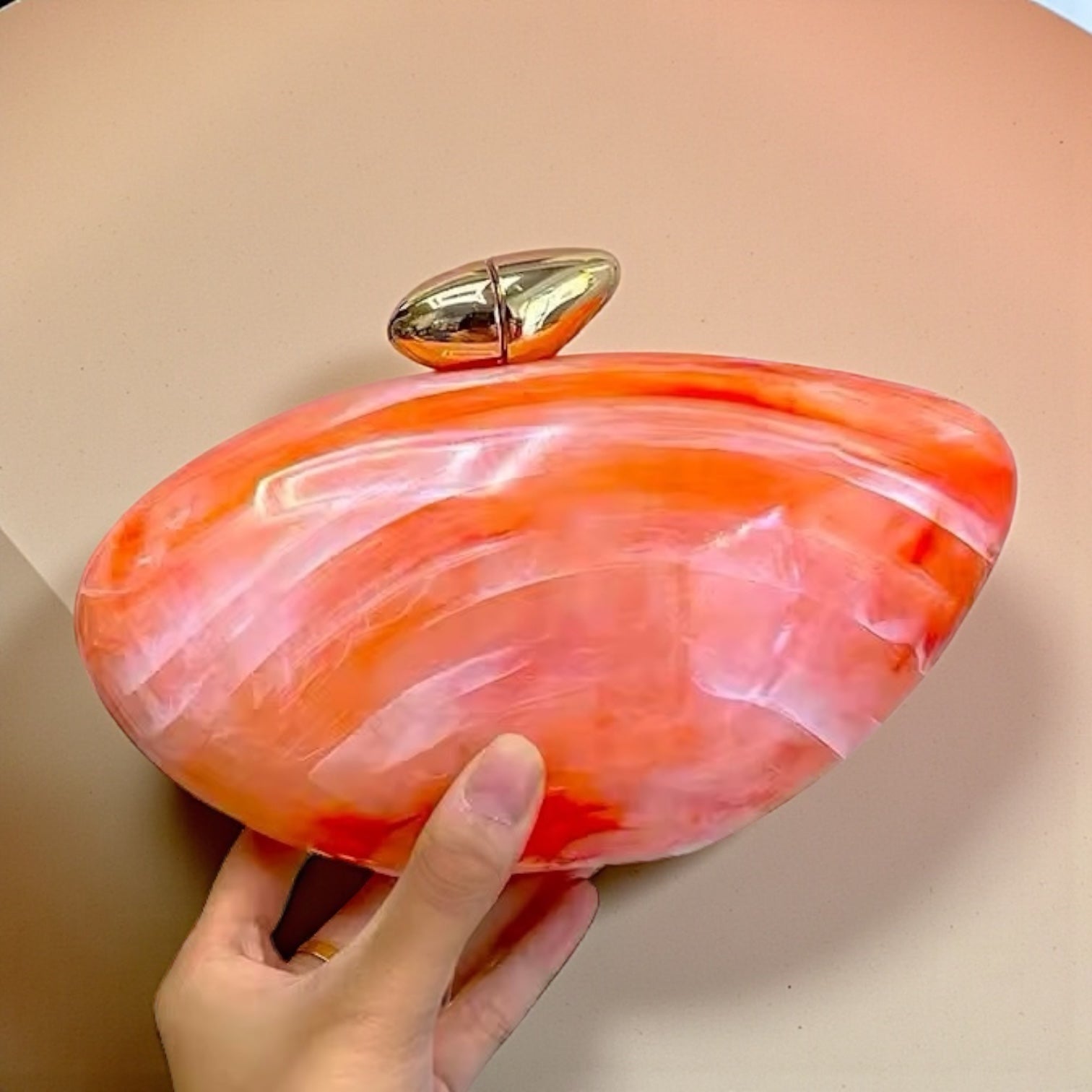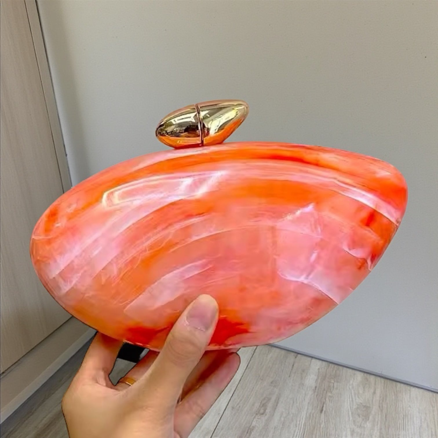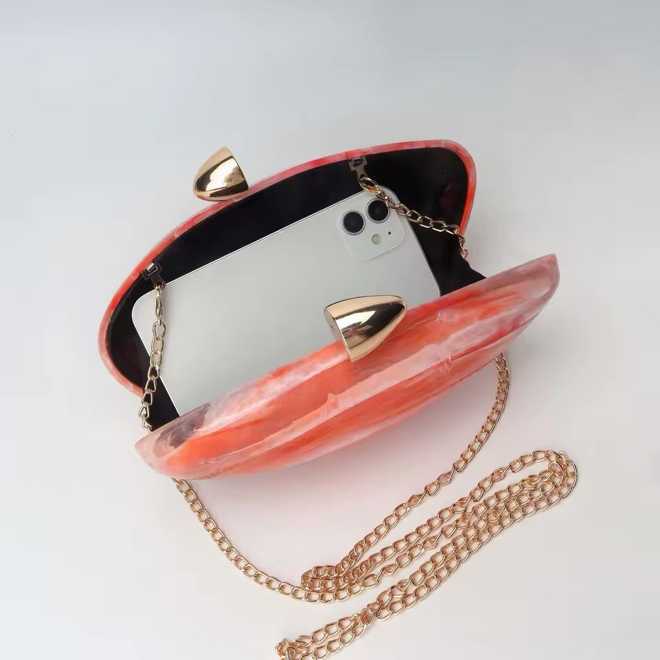 Clutch de carey con detalle dorado + 1 cadena para colgar.