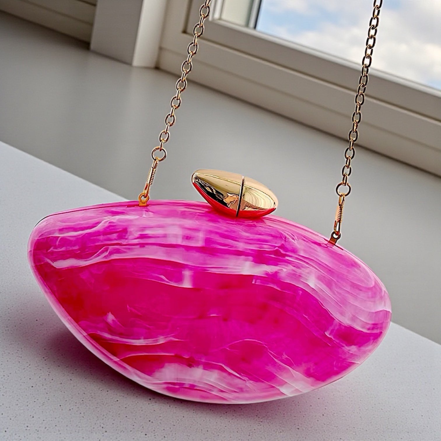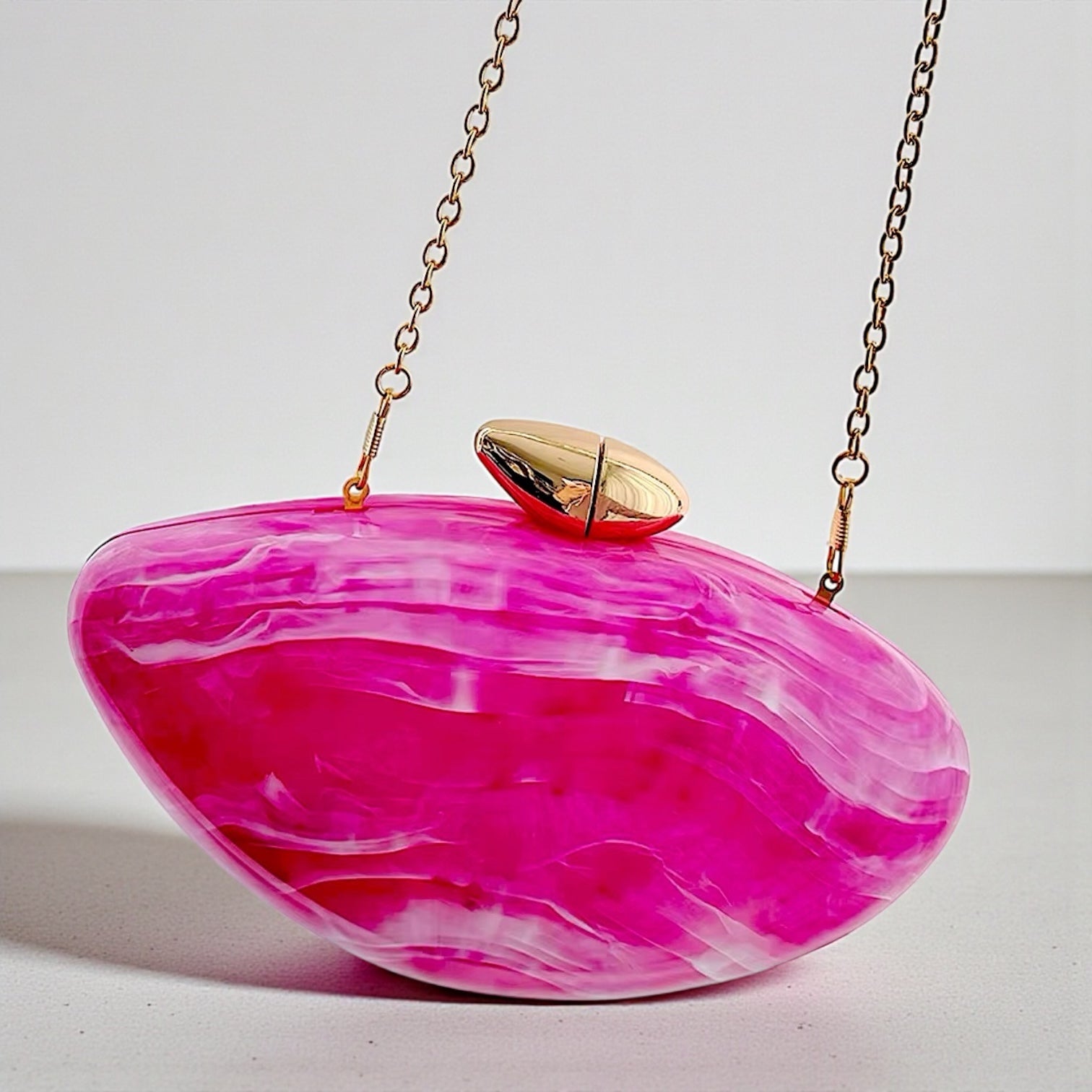 Clutch de carey con detalle dorado + 1 cadena para colgar.