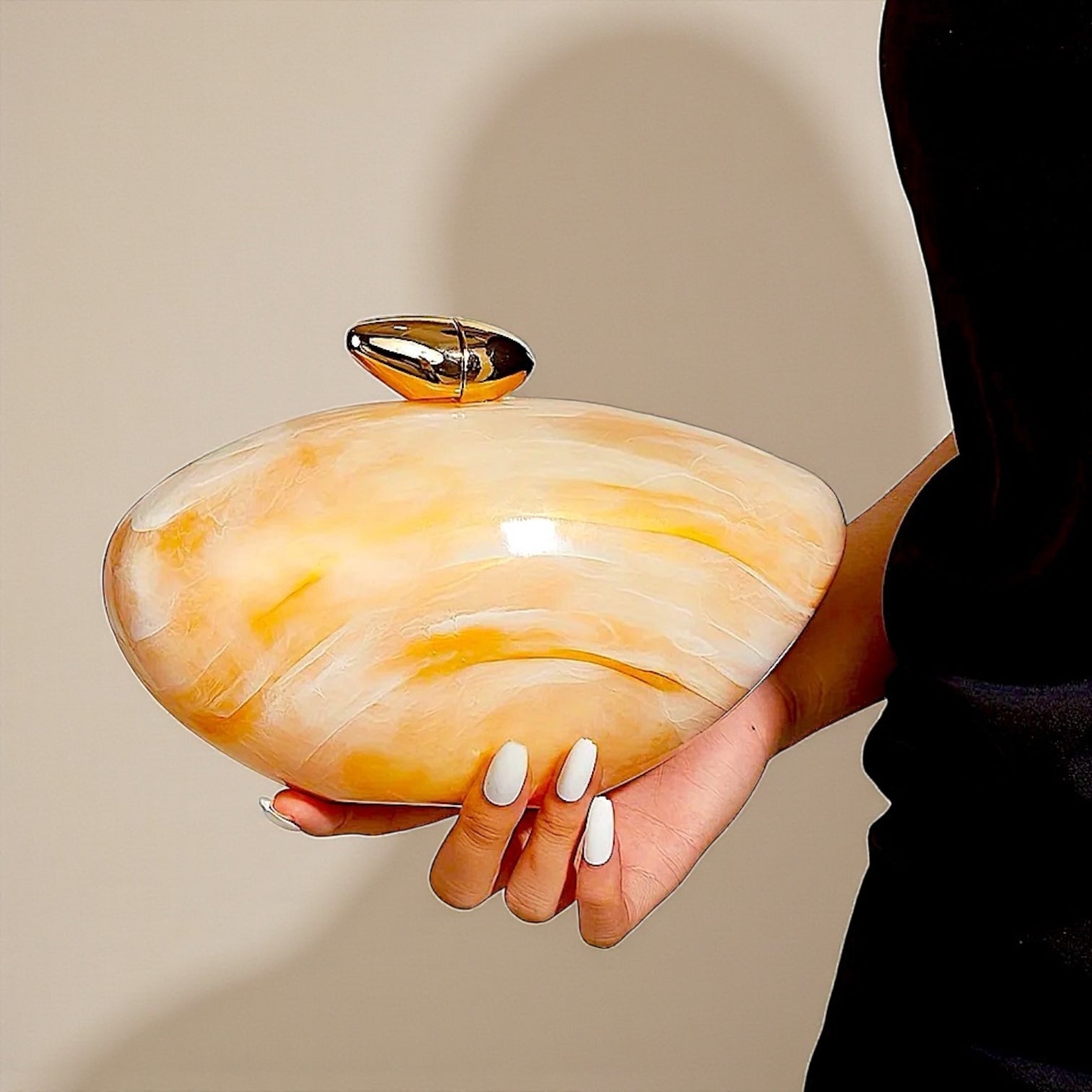 Clutch de carey con detalle dorado + 1 cadena para colgar.