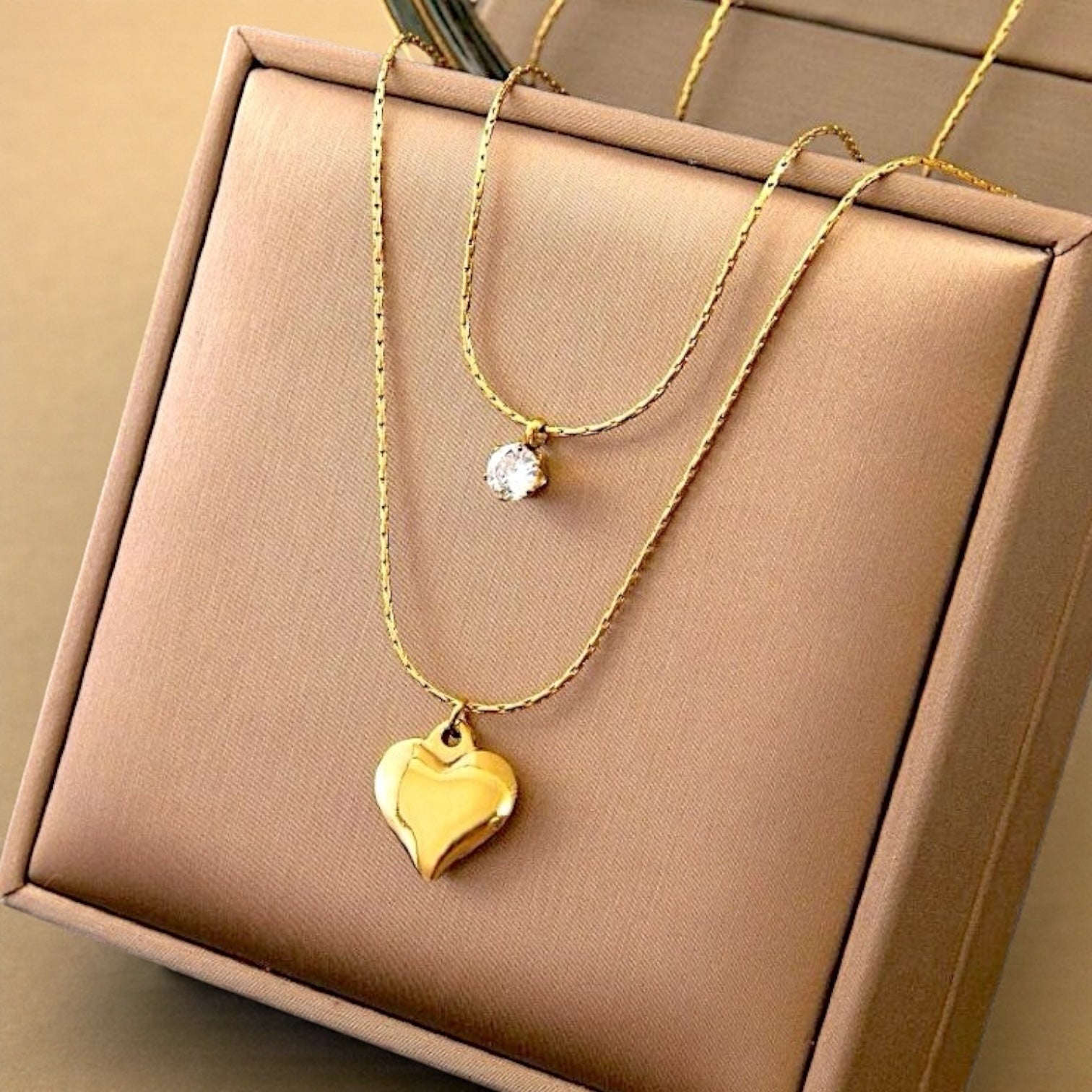 Collar de Acero doble con dije corazón piedrita de strass. No pueden usarse por separados