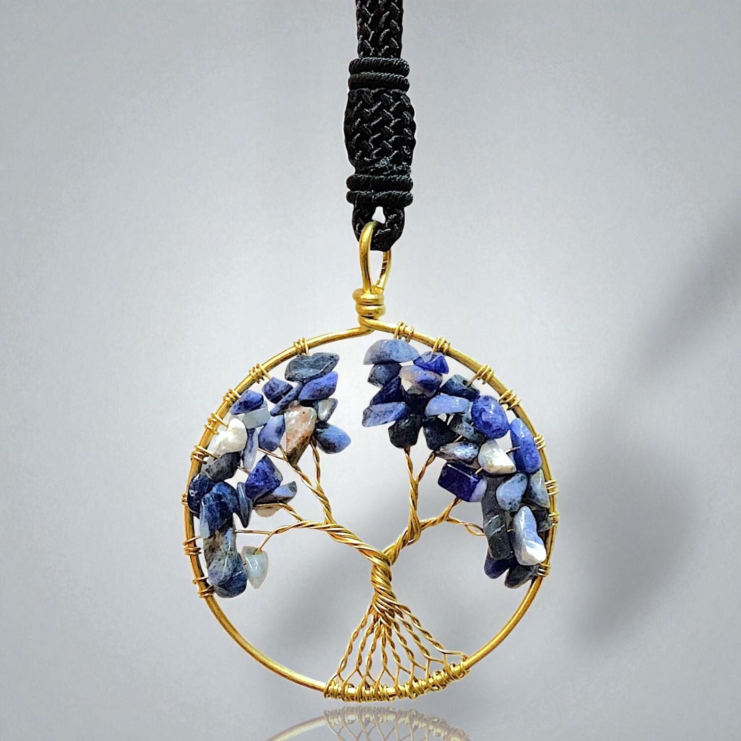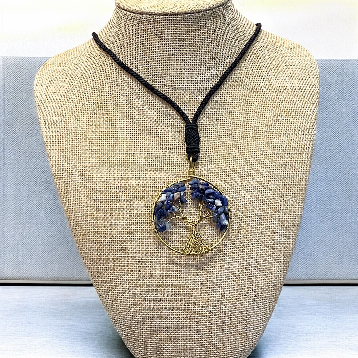 Collar con dije del Árbol de la Vida , Piedras Naturales y cordón negro que se ajusta en el largo deseado.