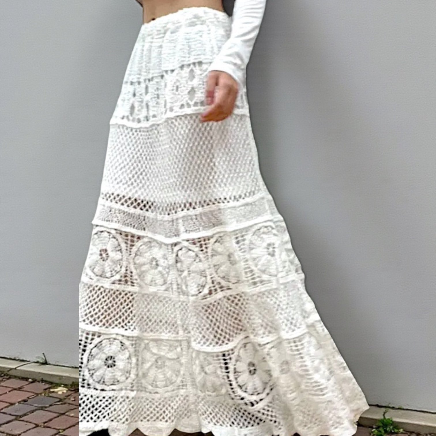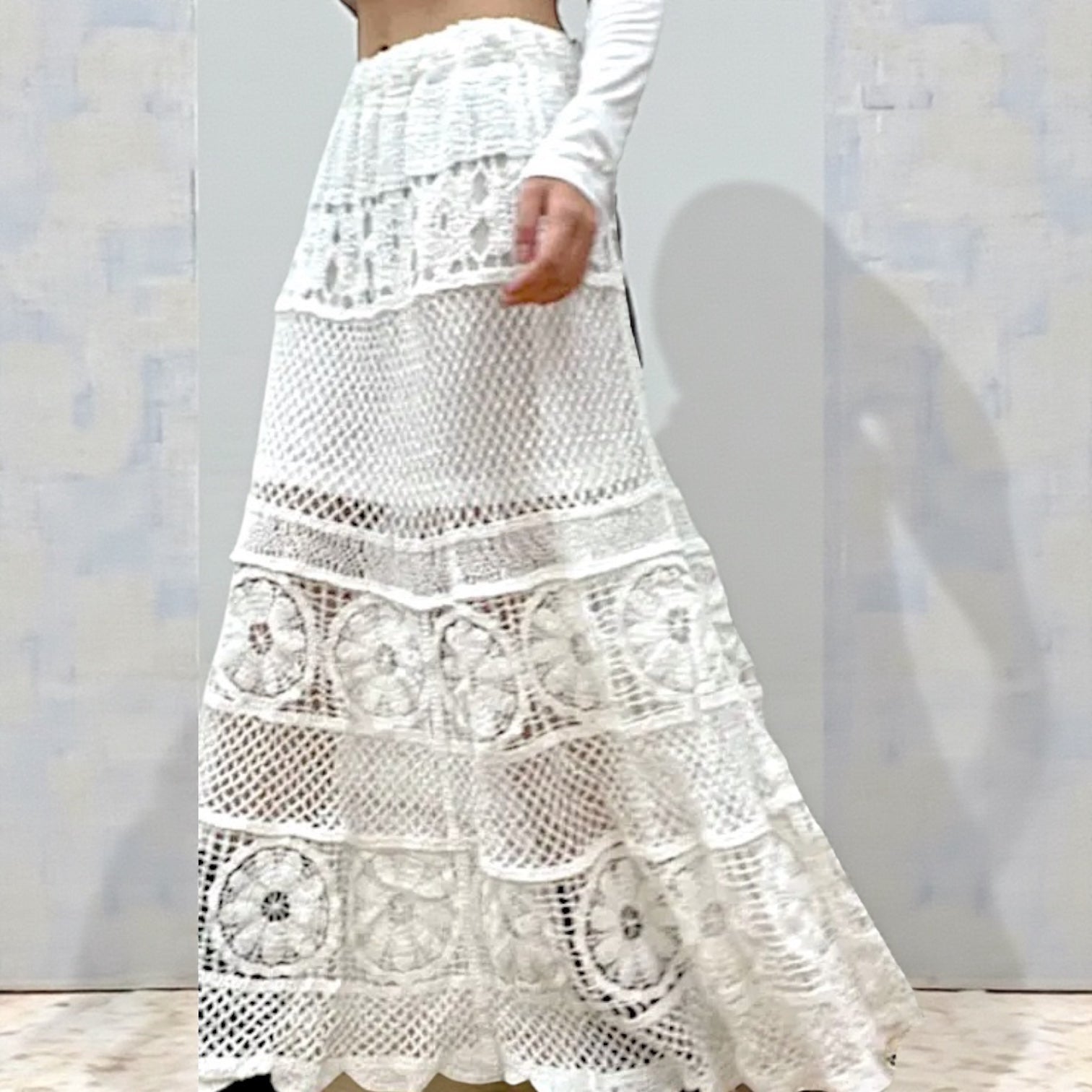 Pollera de cintura de crochet con forro, engomado en la cintura.