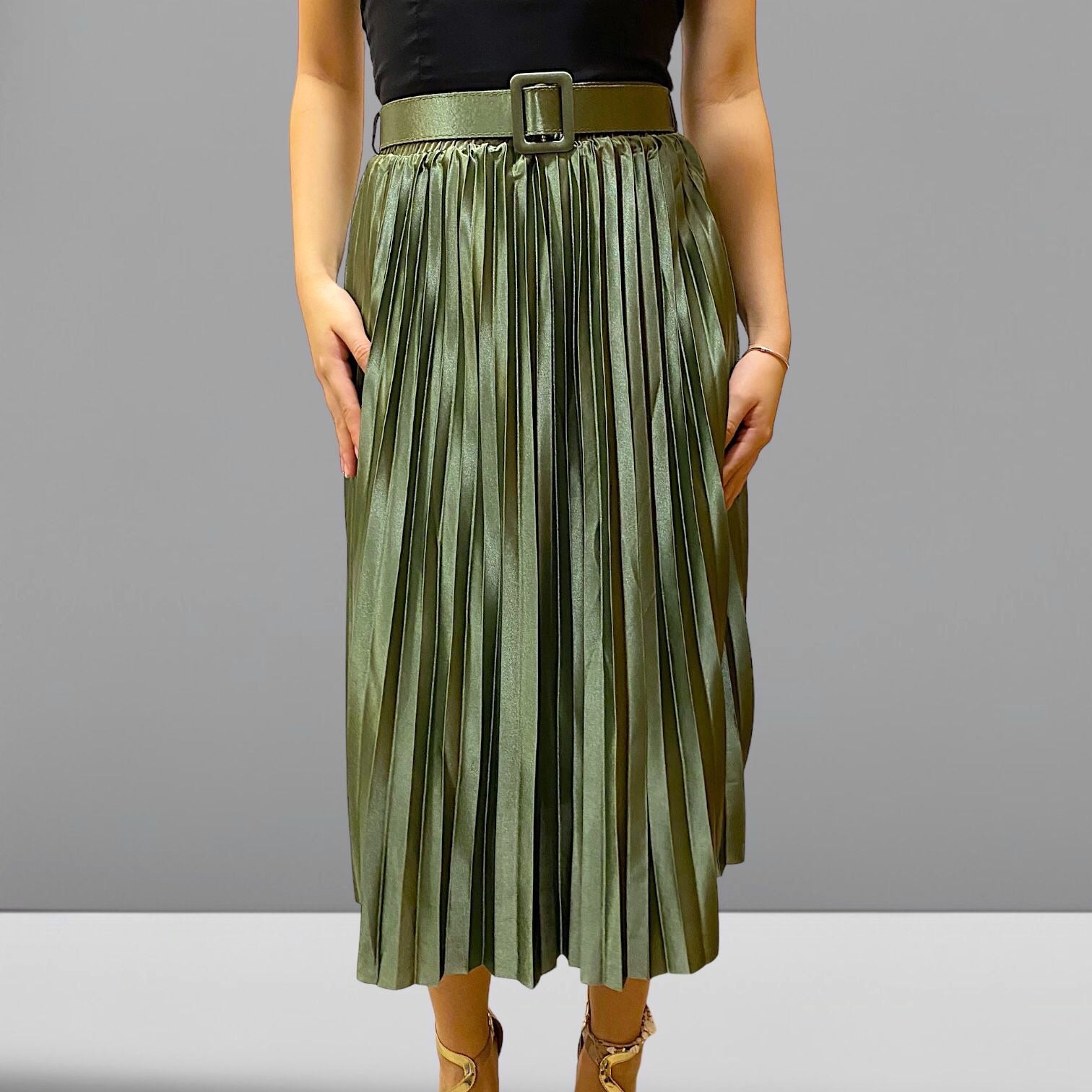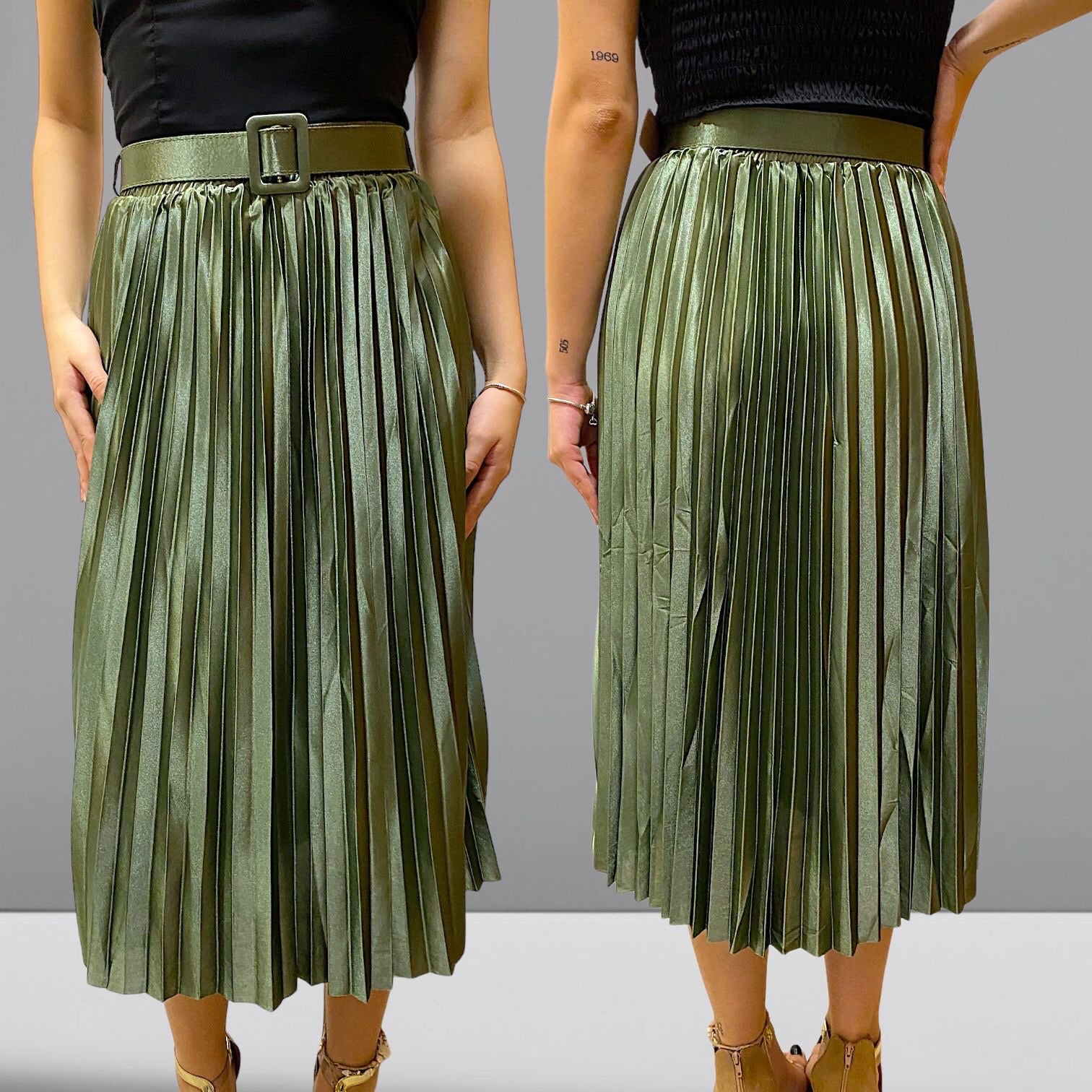 Pollera plisada con cinto, engomado en la cintura y forro.