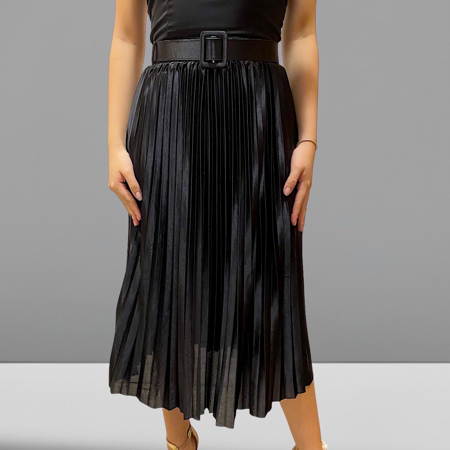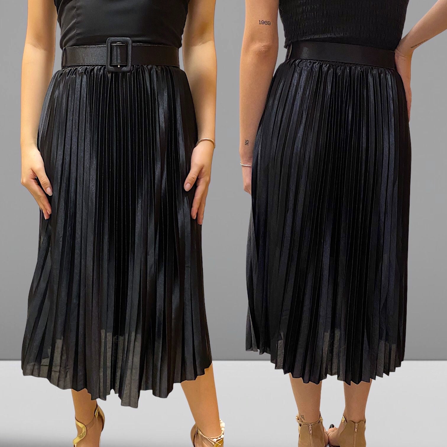 Pollera plisada con cinto, engomado en la cintura y forro.