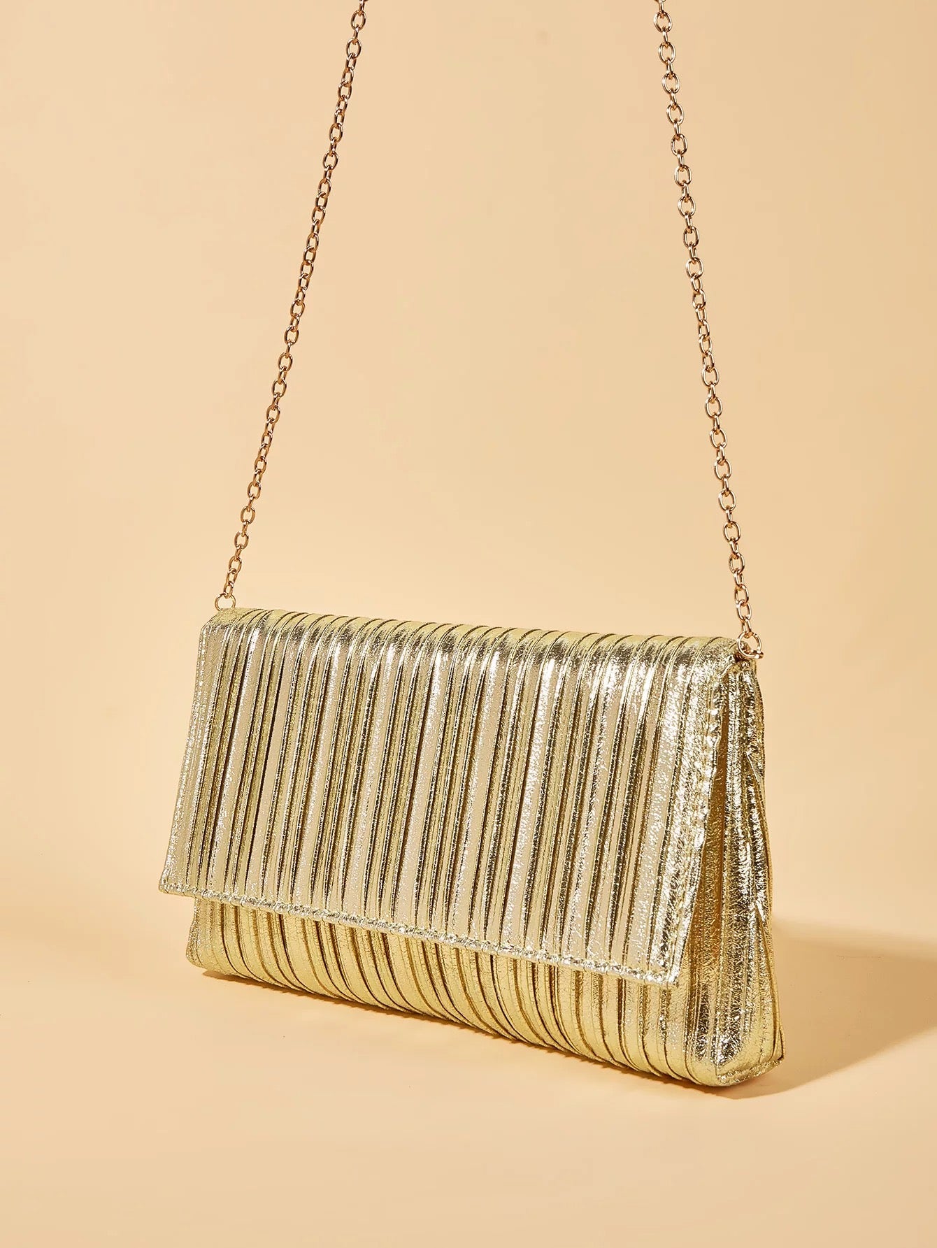Sobre dorado brilloso + 1 cadena dorada para colgar, totalmente forrado por dentro.