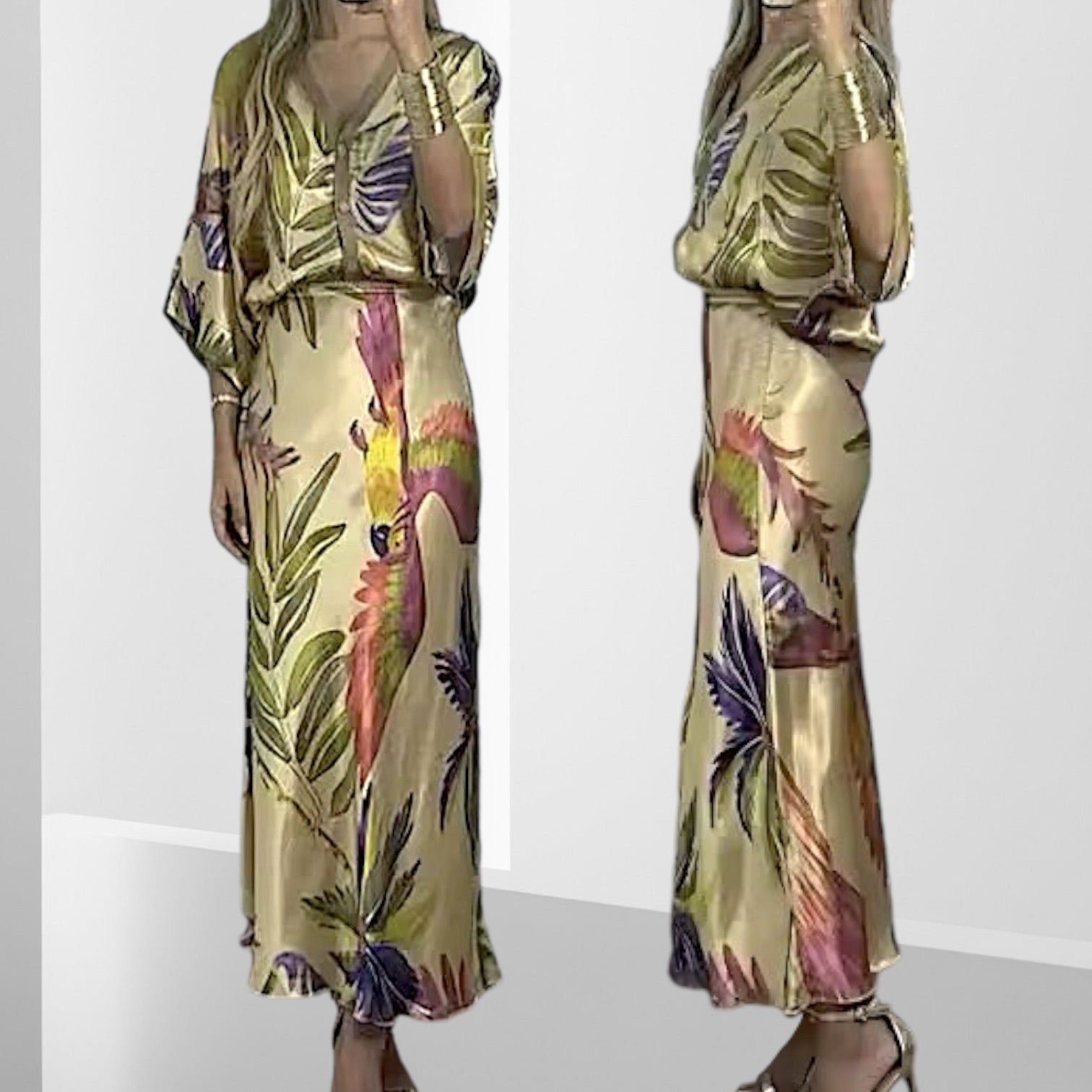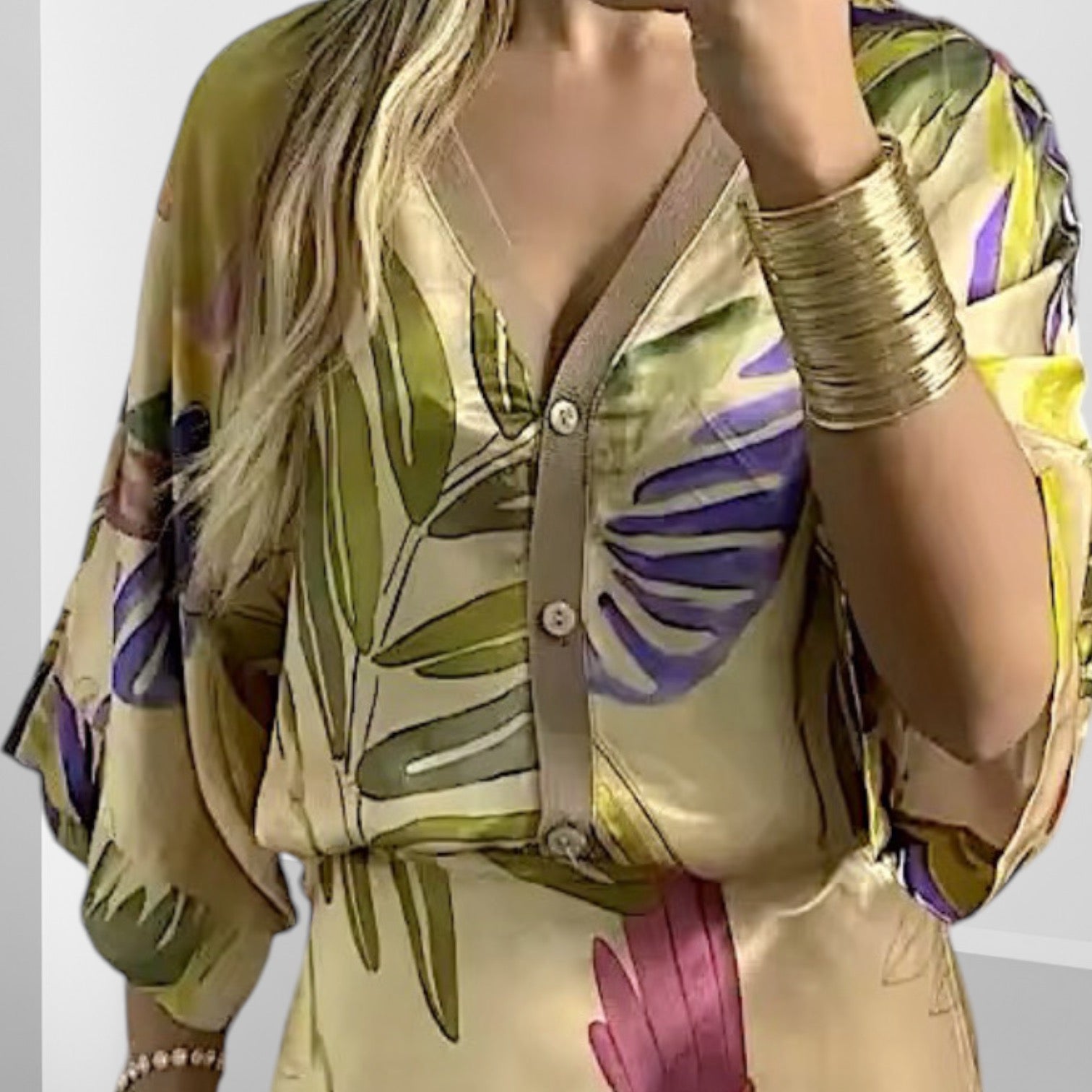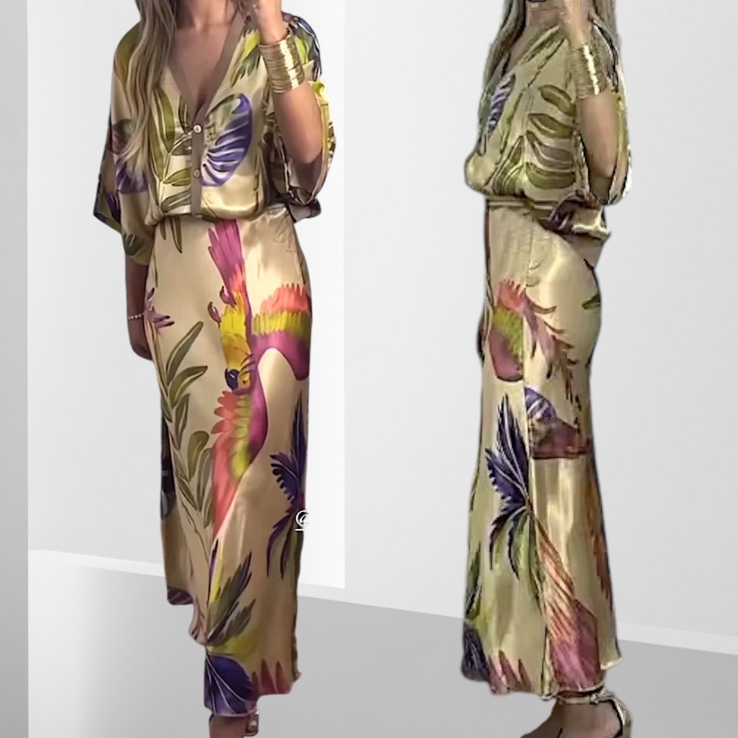 Blusa holgada con mangas amplias + Pollera con cierre al costado.