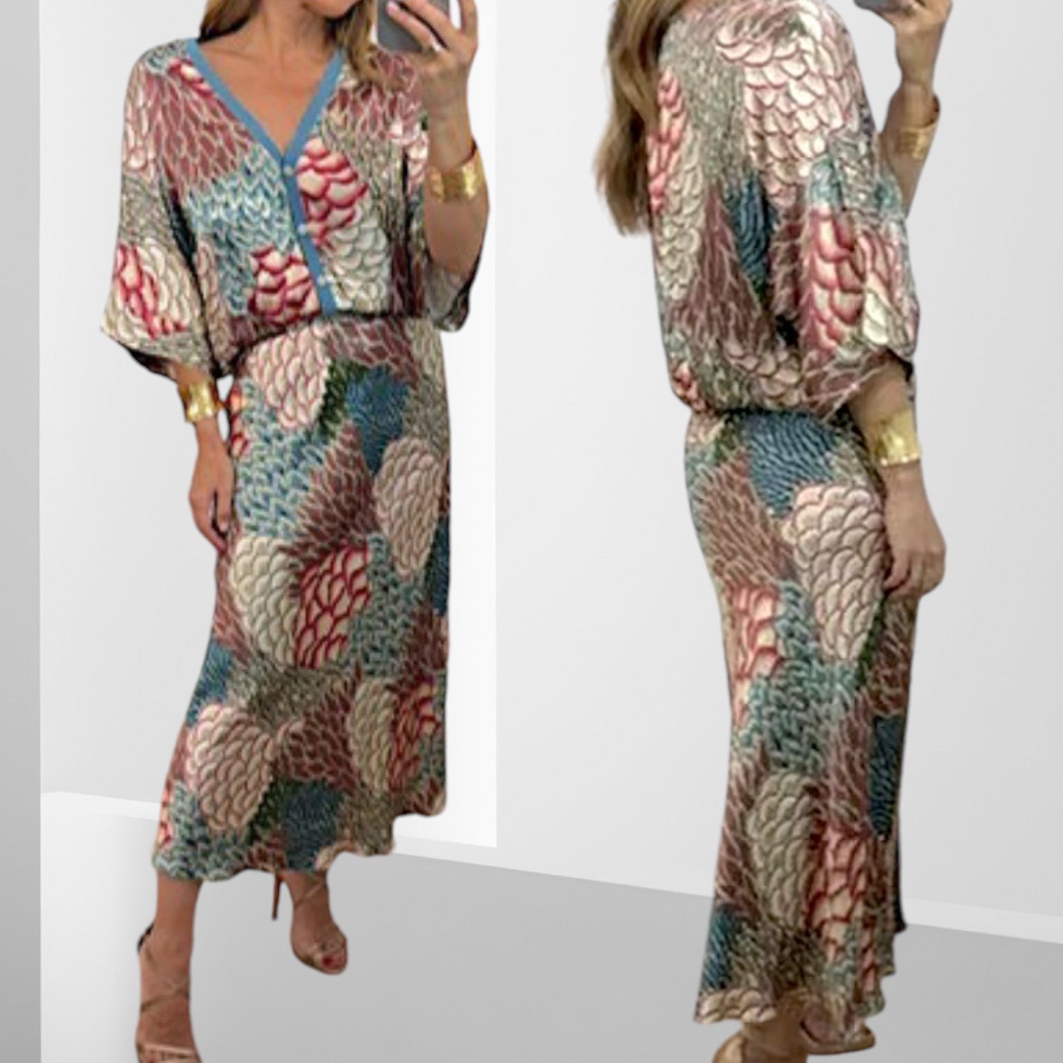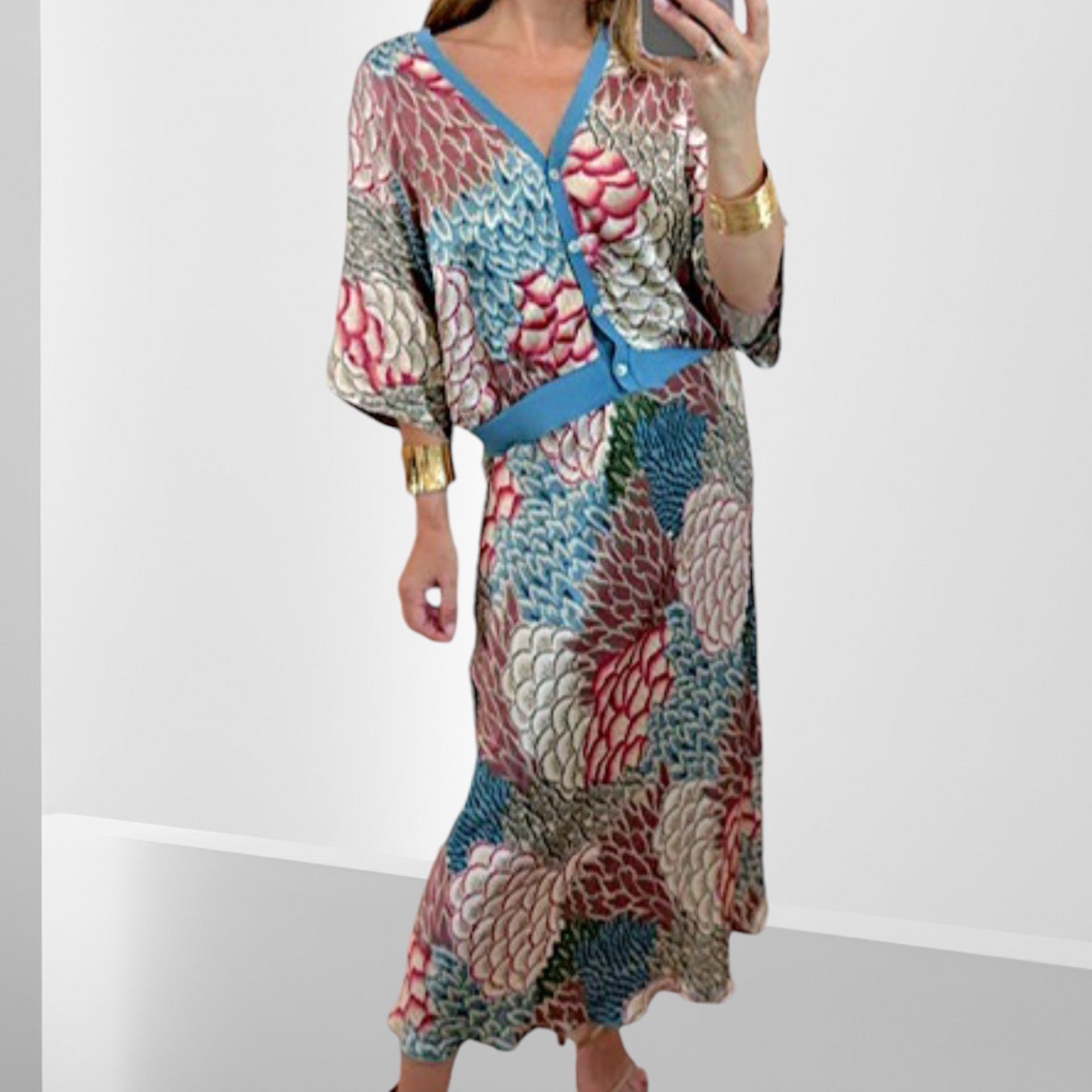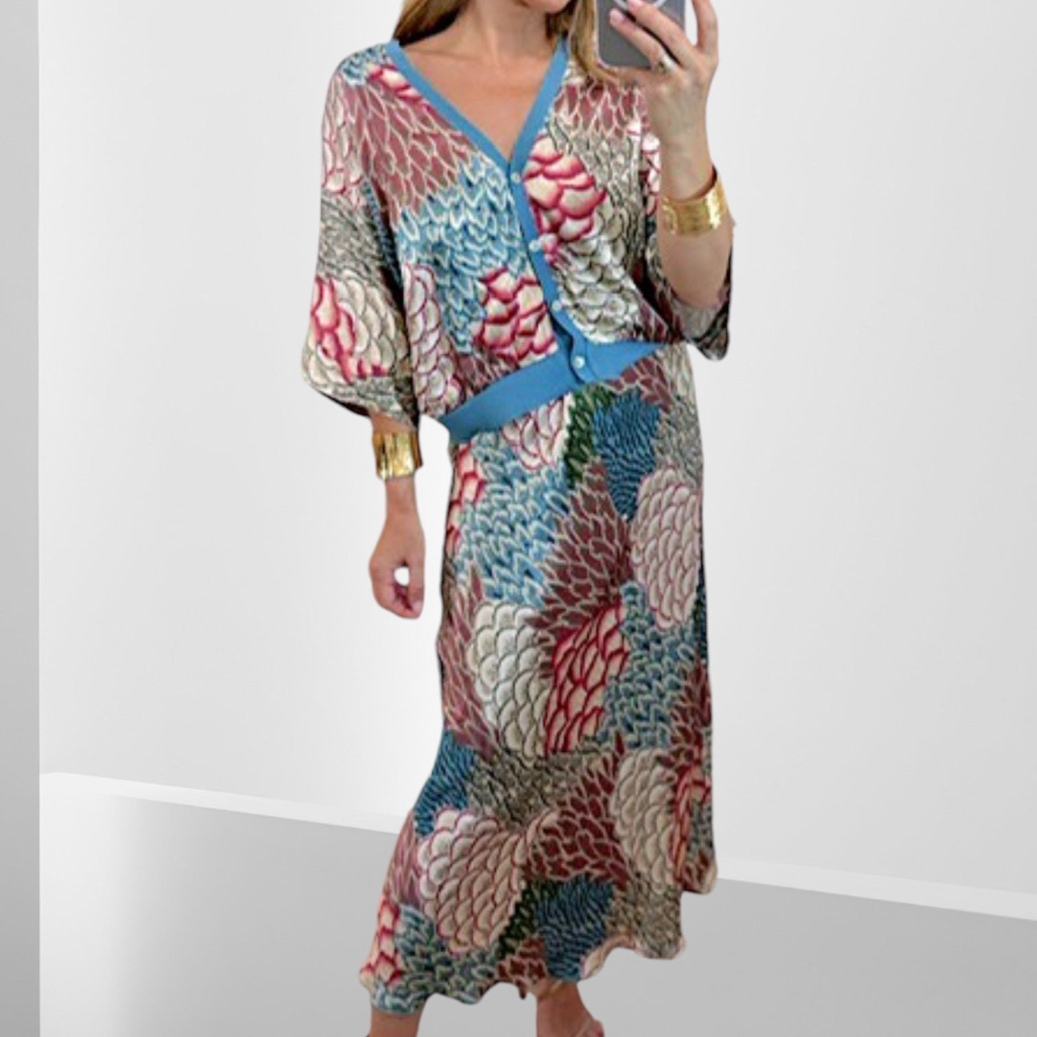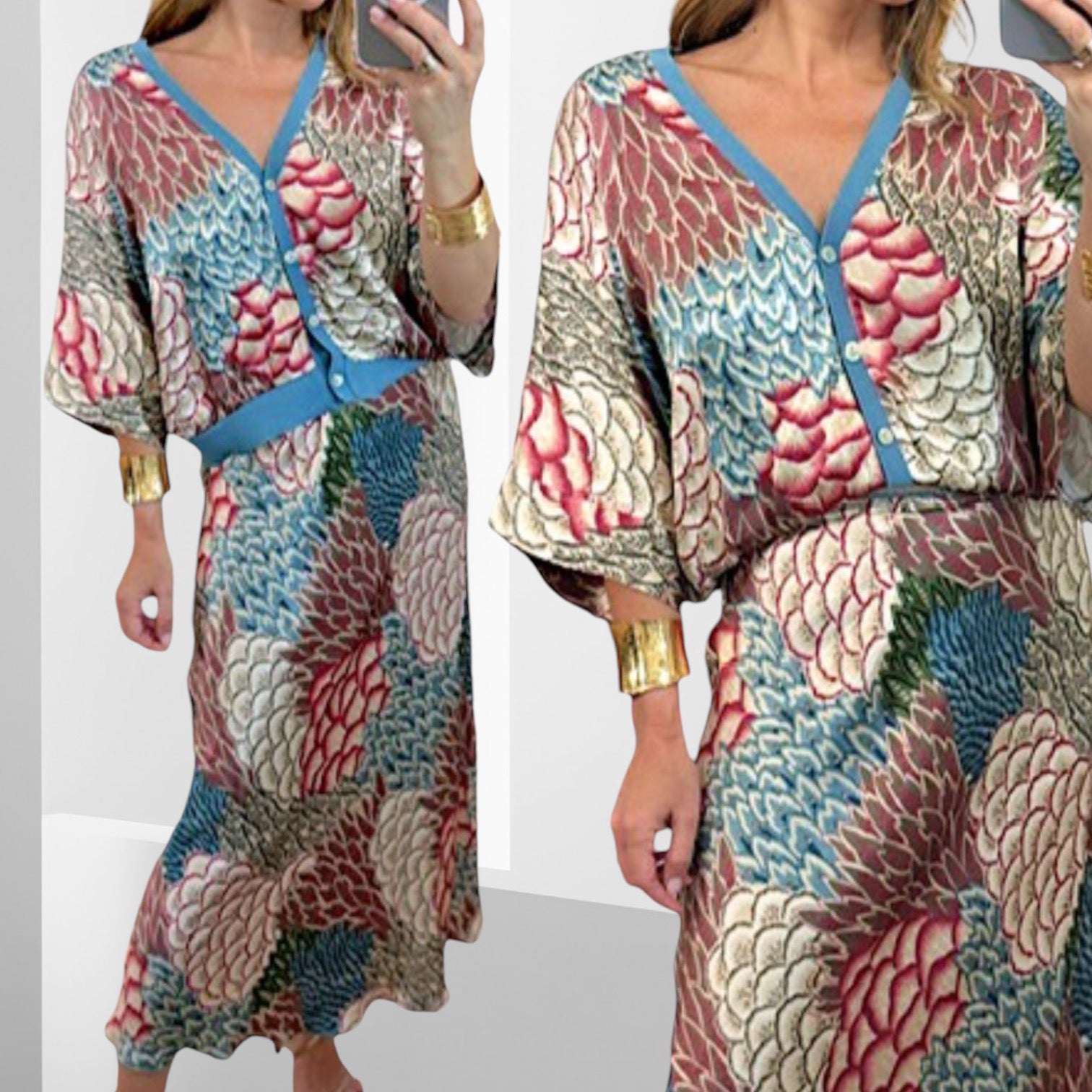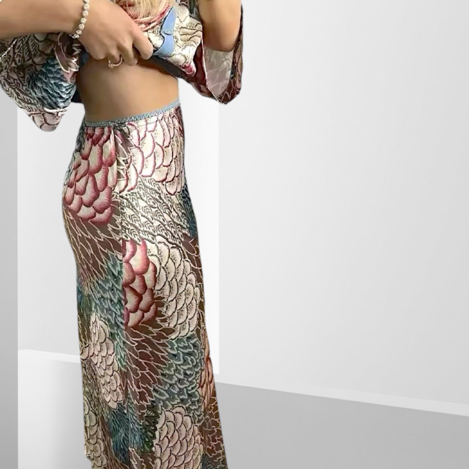 Blusa holgada con mangas amplias + Pollera con cierre al costado.