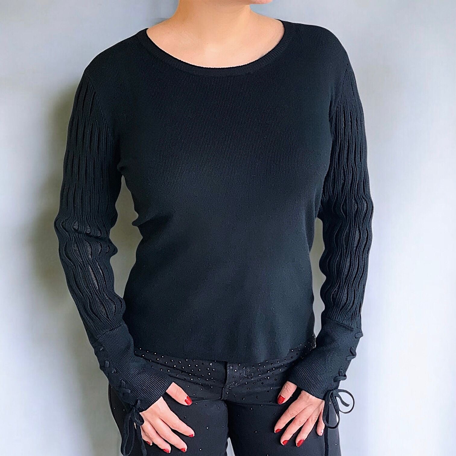 Sweater con trabajos en relieves y detalles de transparencias en las mangas